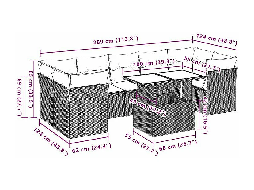Salon de jardin 8 pcs avec coussins noir résine tressée