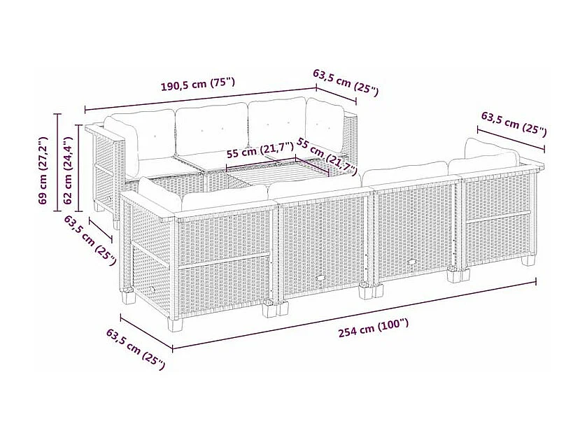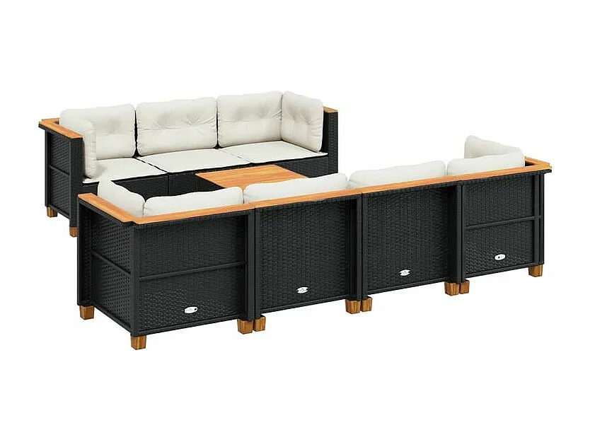 Salon de jardin 8 pcs avec coussins noir résine tressée