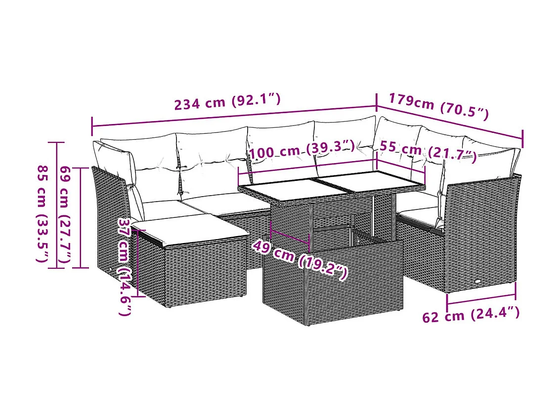 Salon de jardin 8 pcs avec coussins noir résine tressée