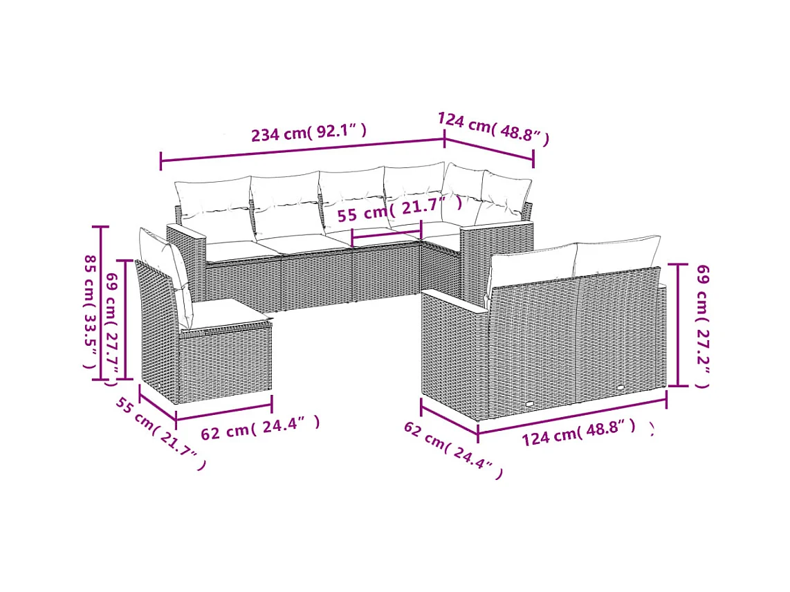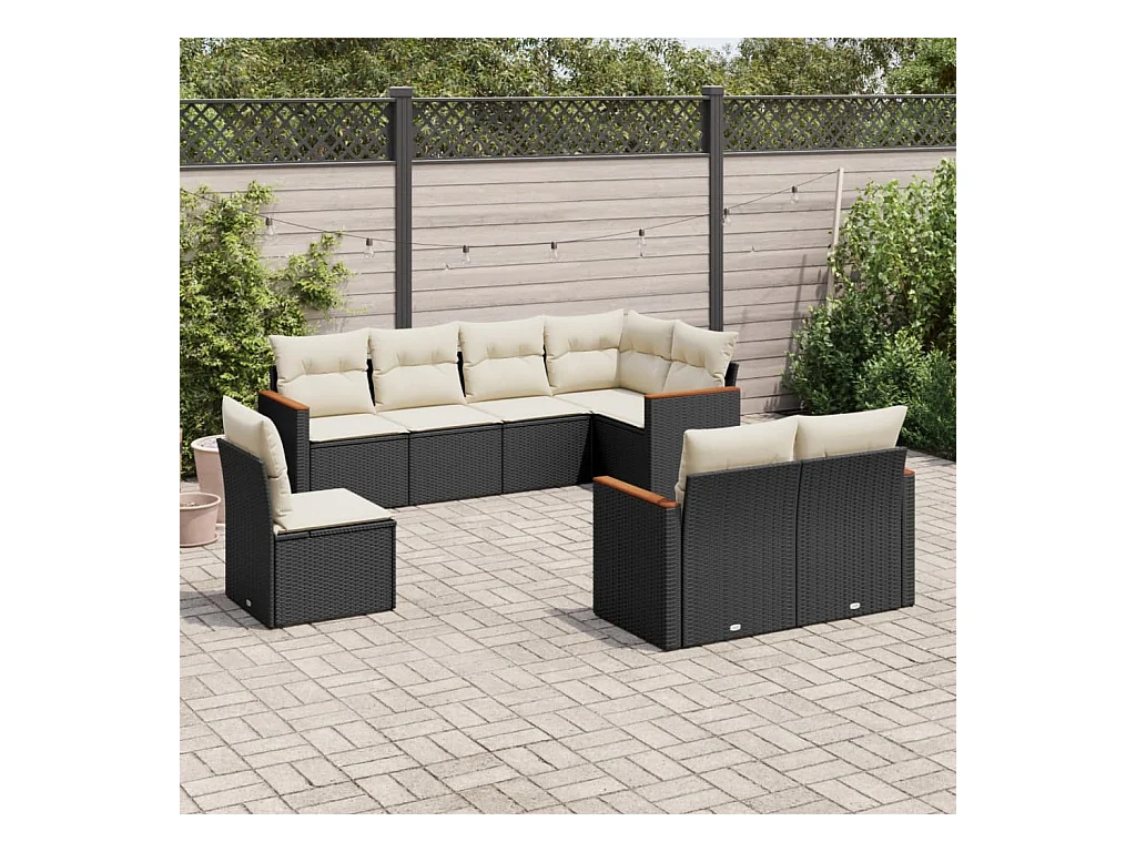 Salon de jardin 8 pcs avec coussins noir résine tressée