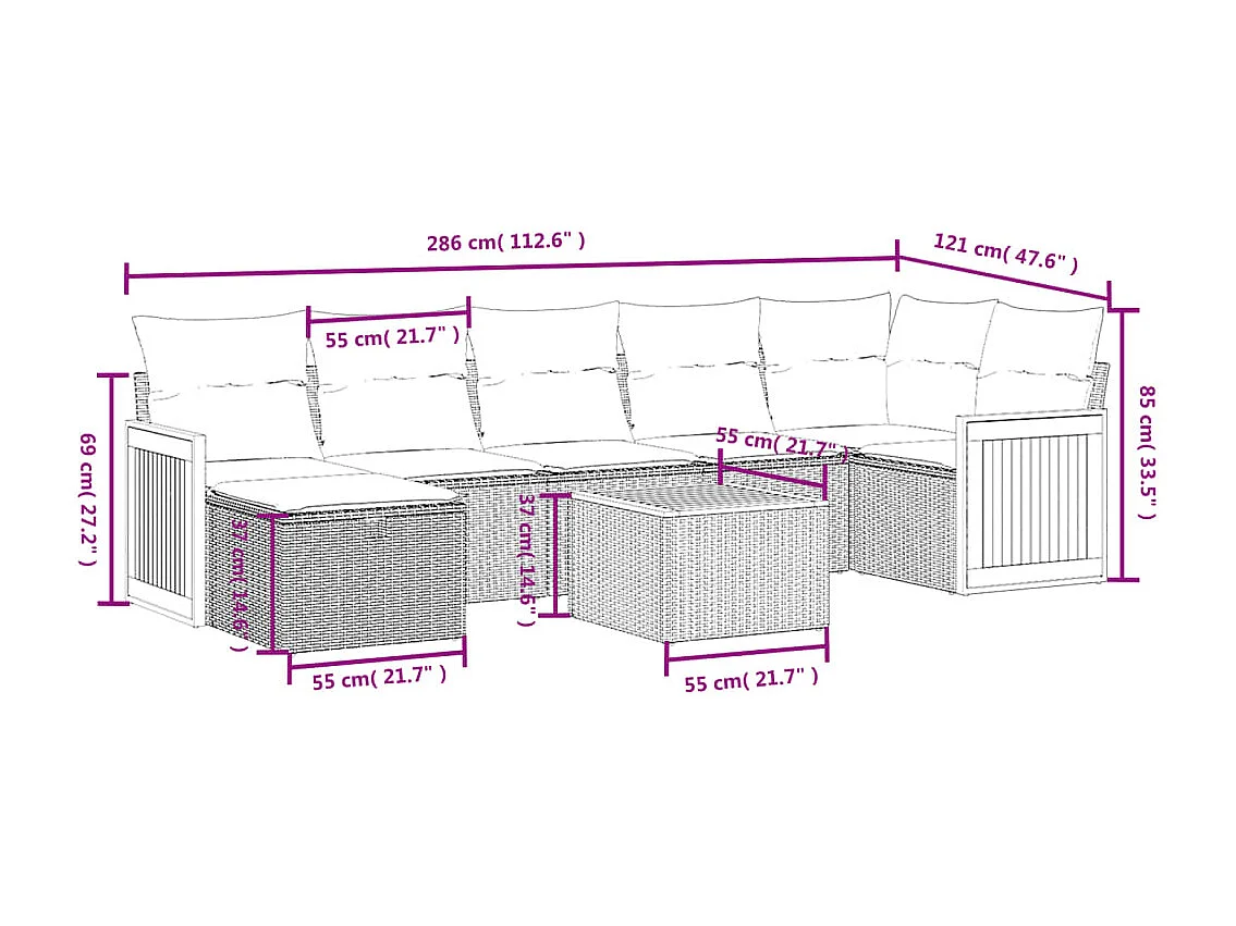 Salon de jardin 8 pcs avec coussins noir résine tressée