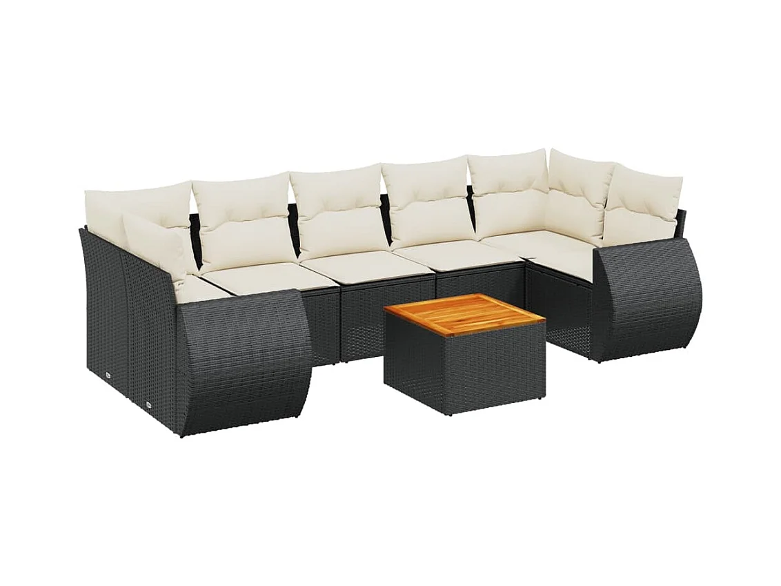 Salon de jardin 8 pcs avec coussins noir résine tressée