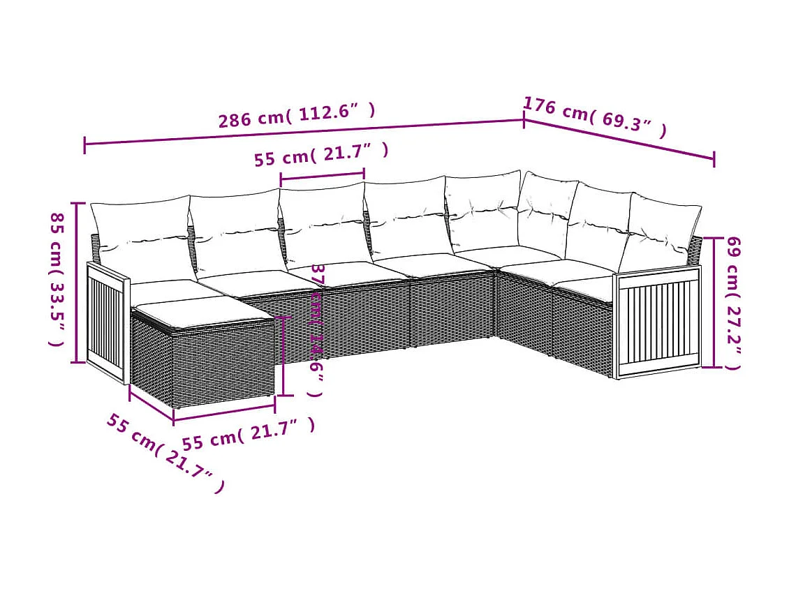 Salon de jardin 8 pcs avec coussins noir résine tressée