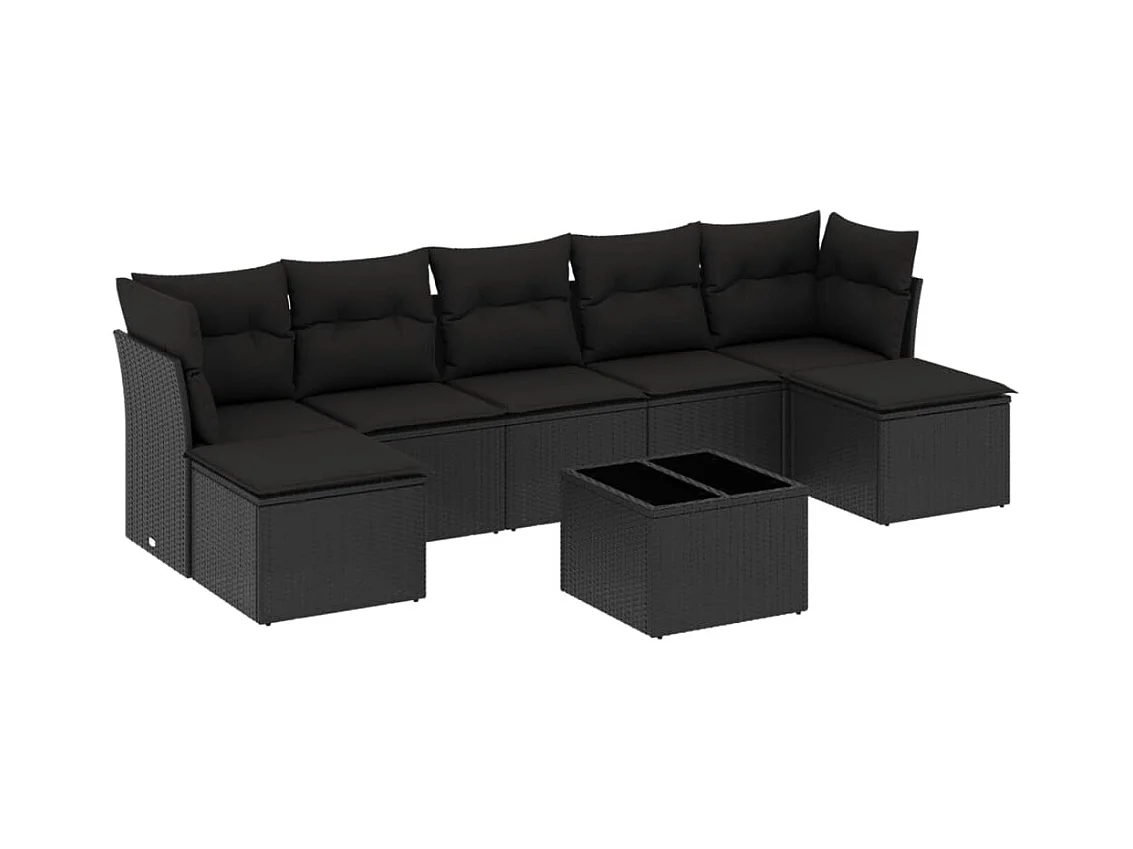 Salon de jardin 8 pcs avec coussins noir résine tressée