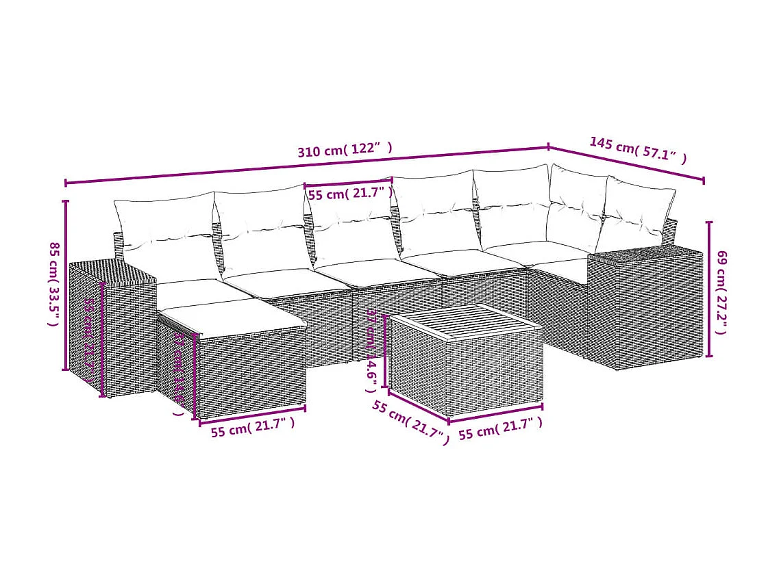 Salon de jardin 8 pcs avec coussins noir résine tressée