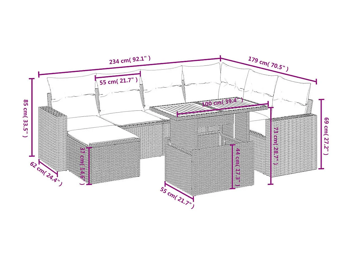Salon de jardin 8 pcs avec coussins noir résine tressée