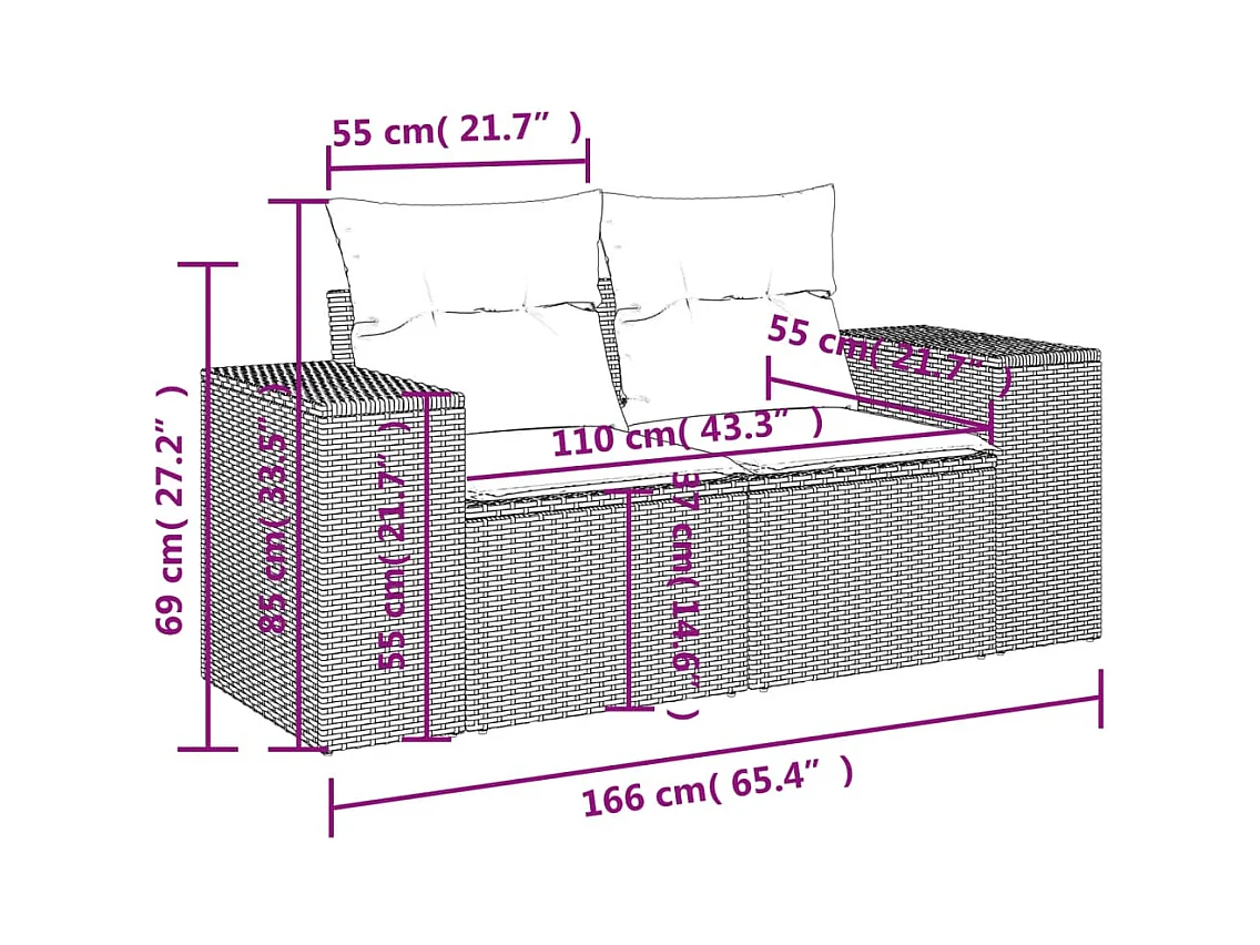 Salon de jardin 8 pcs avec coussins noir résine tressée