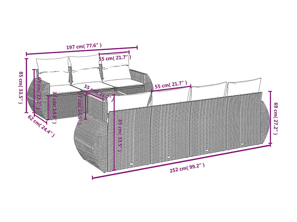 Salon de jardin 8 pcs avec coussins noir résine tressée