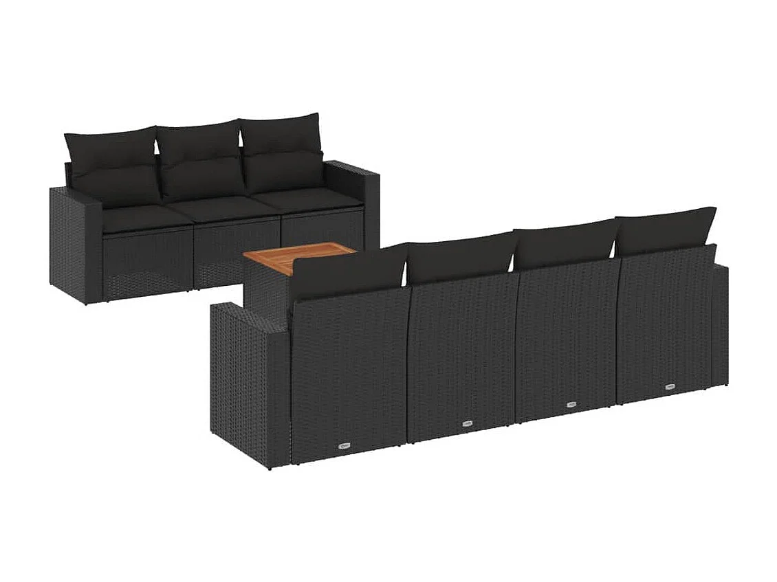 Salon de jardin 8 pcs avec coussins noir résine tressée