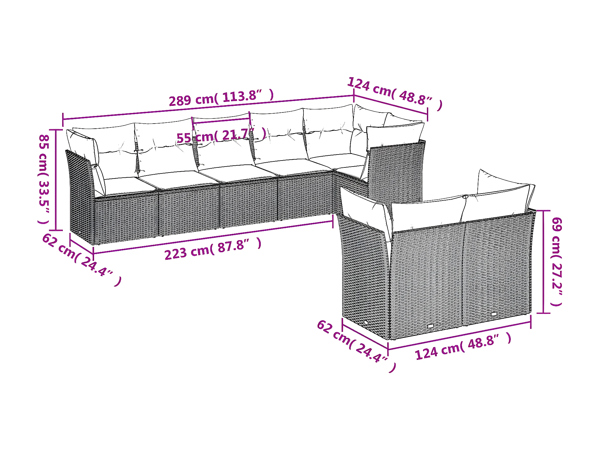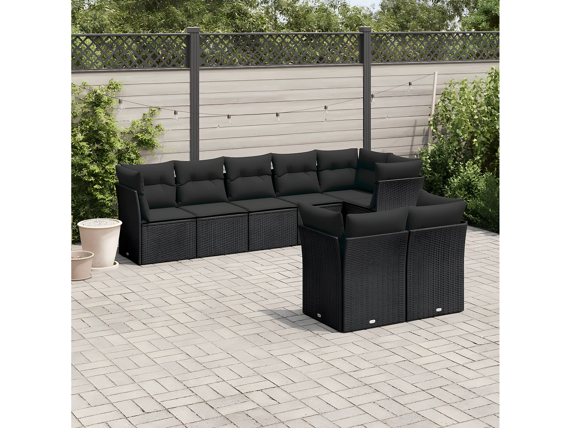 Salon de jardin 8 pcs avec coussins noir résine tressée
