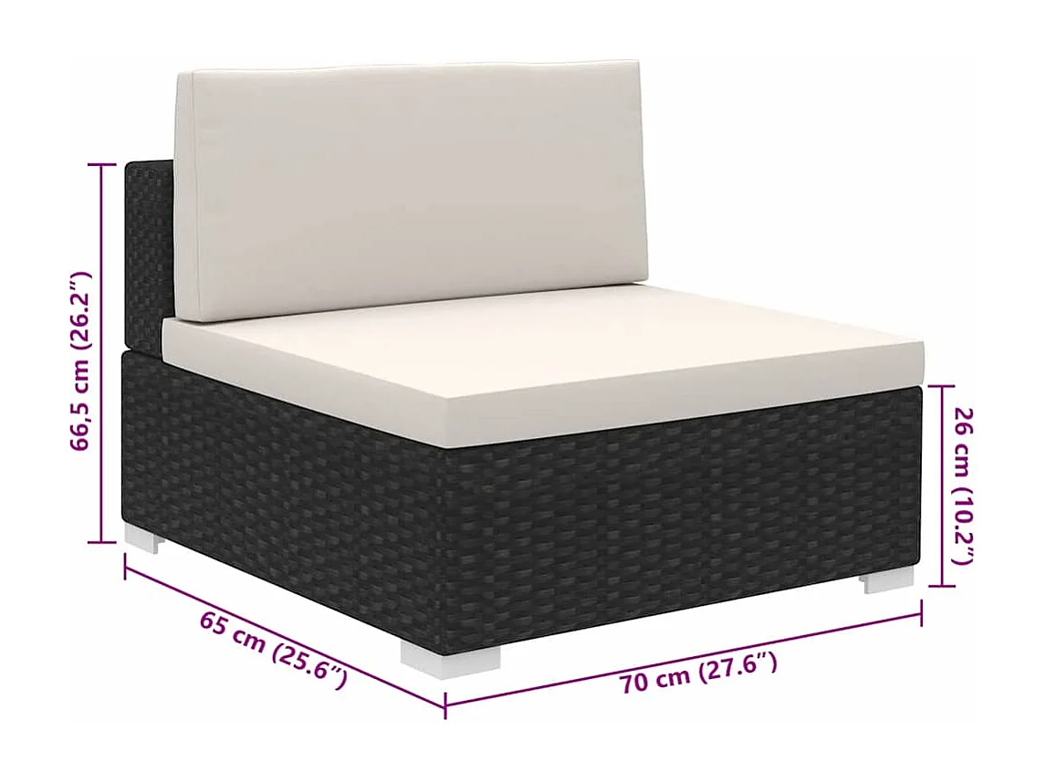 Salon de jardin 8 pcs avec coussins Résine tressée Noir
