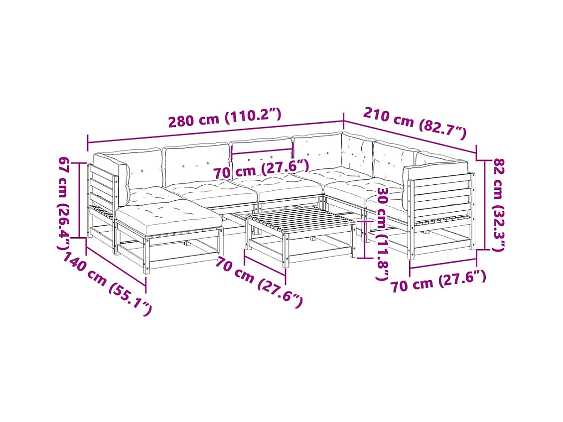 Salon de jardin 8 pcs avec coussins sapin douglas solide