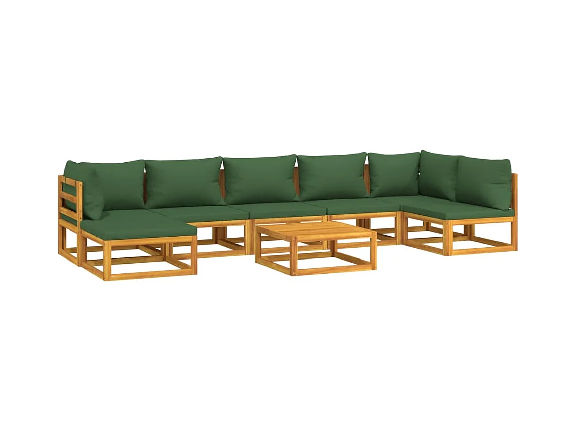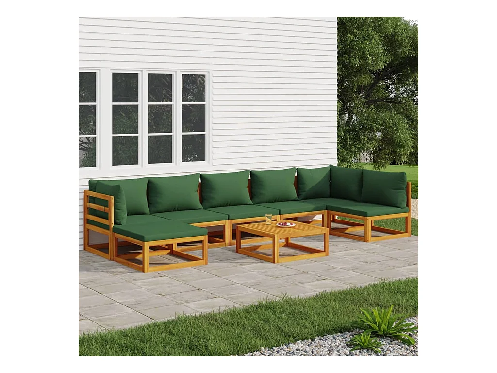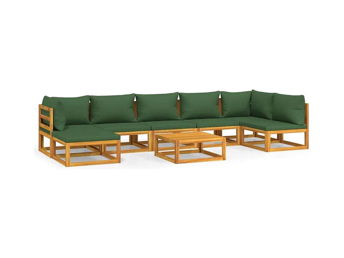 Salon de jardin 8 pcs avec coussins vert bois massif