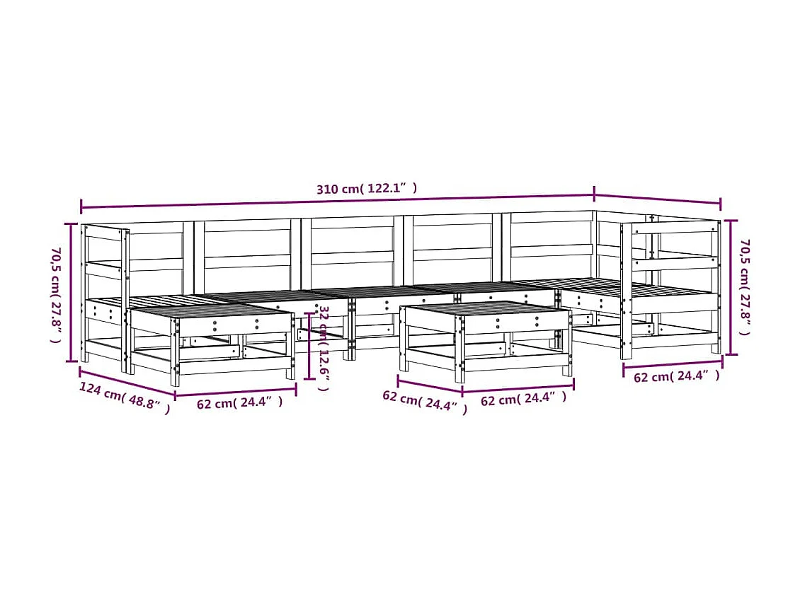 Salon de jardin 8 pcs Blanc Bois de pin massif