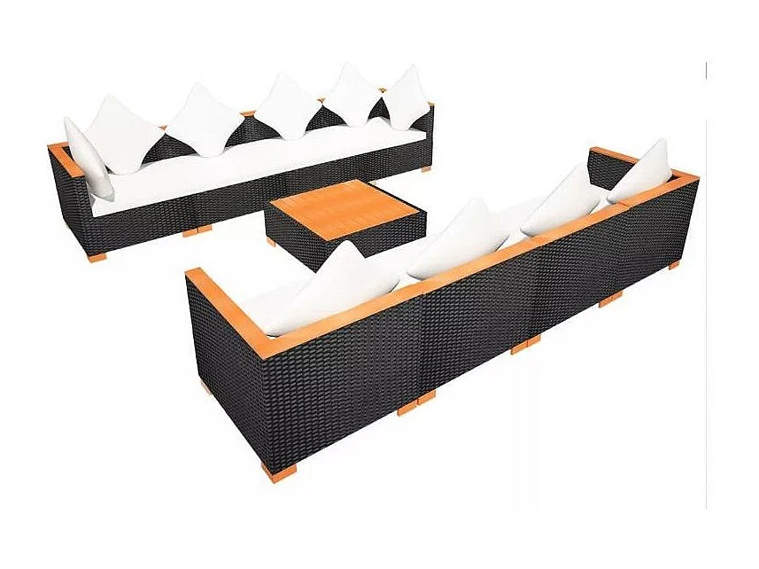 Salon de jardin 8 pièce résine tressée noir et coussin blanc Kimberly 2