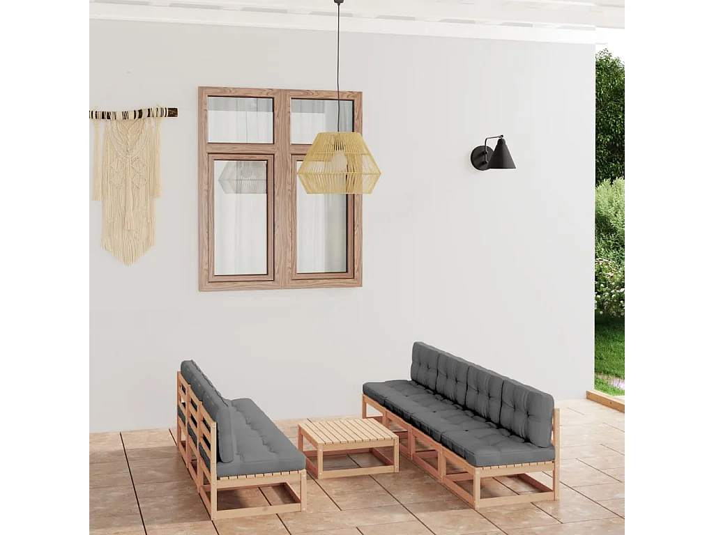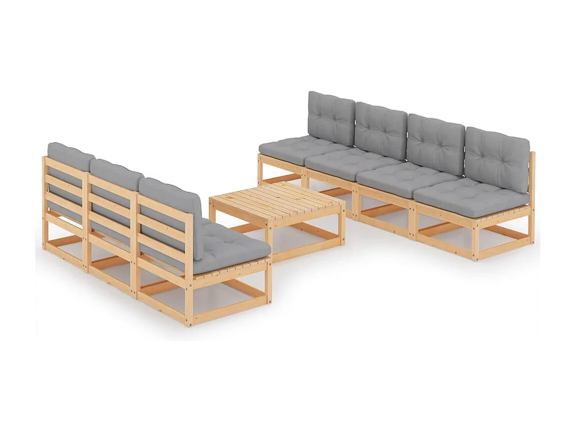 Salon de jardin 8 pièces avec coussins Bois de pin massif