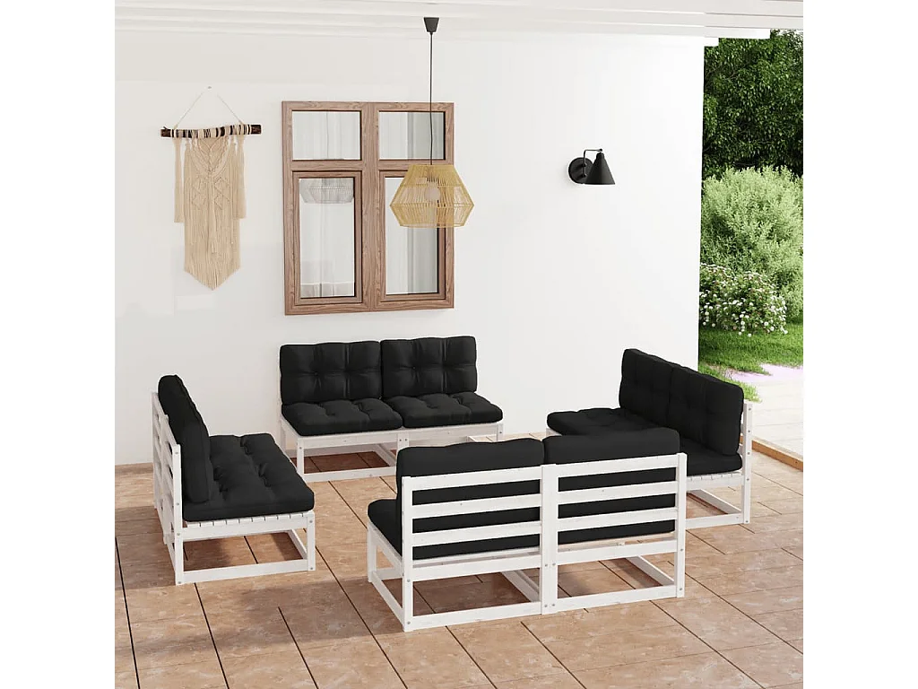 Salon de jardin 8 pièces avec coussins Bois de pin massif