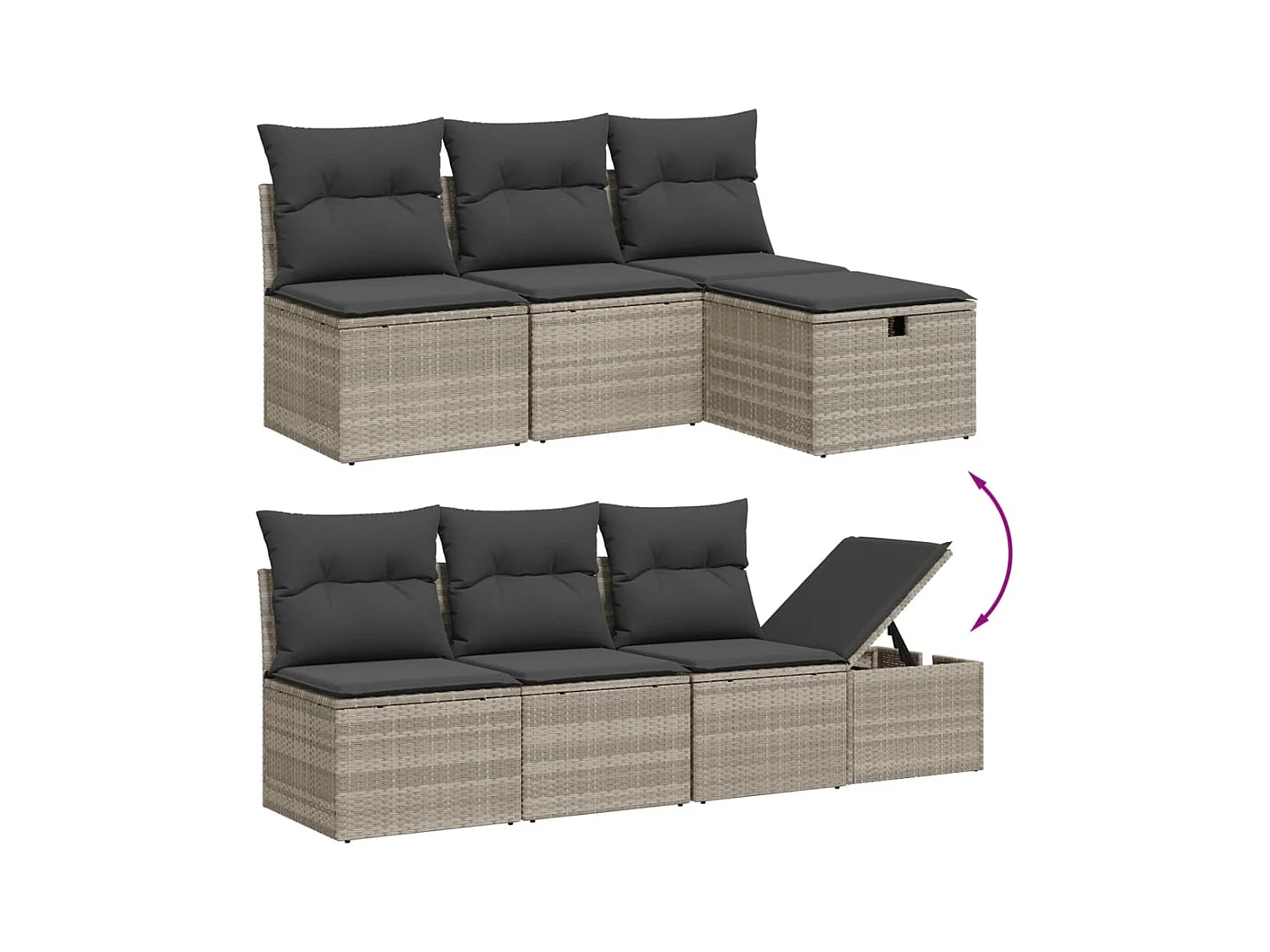 Salon de jardin 8 pièces avec coussins gris clair résine tressée
