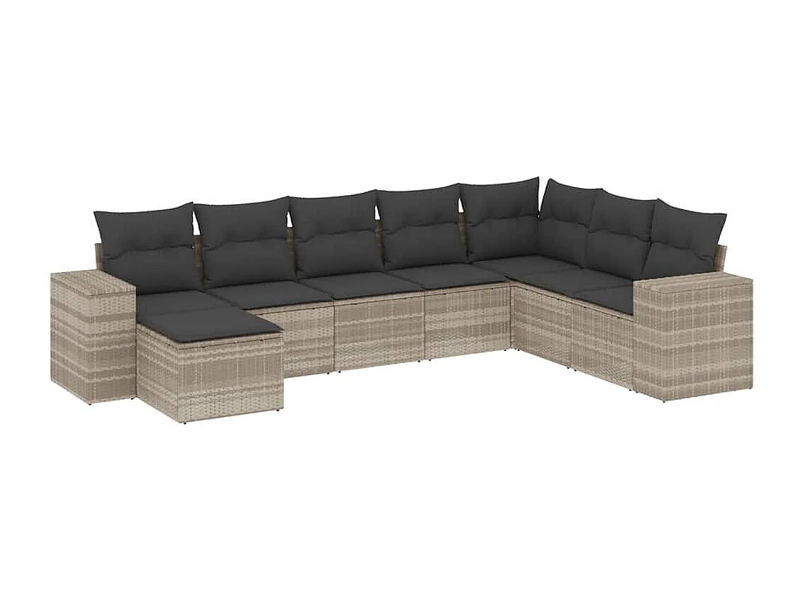 Salon de jardin 8 pièces avec coussins gris clair résine tressée