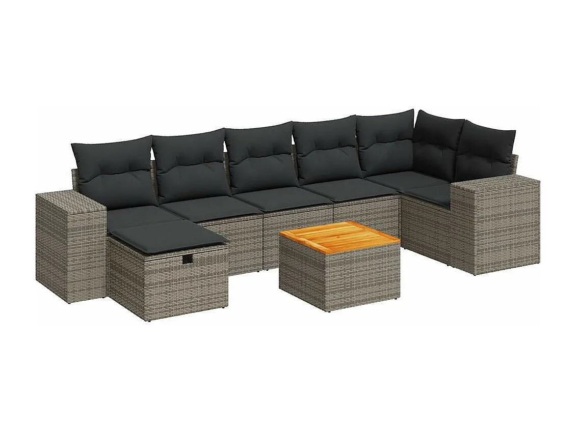 Salon de jardin 8 pièces avec coussins gris résine tressée