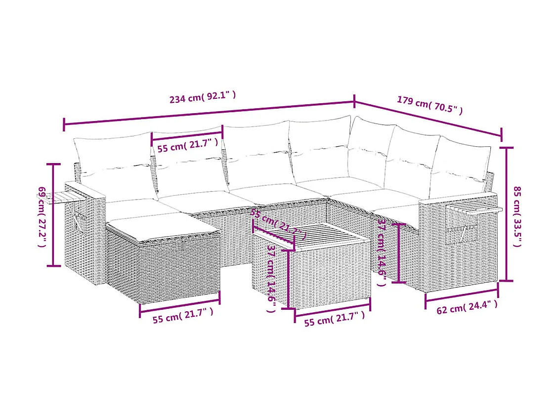 Salon de jardin 8 pièces avec coussins gris résine tressée