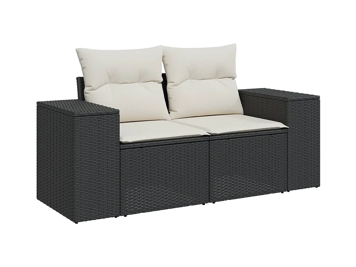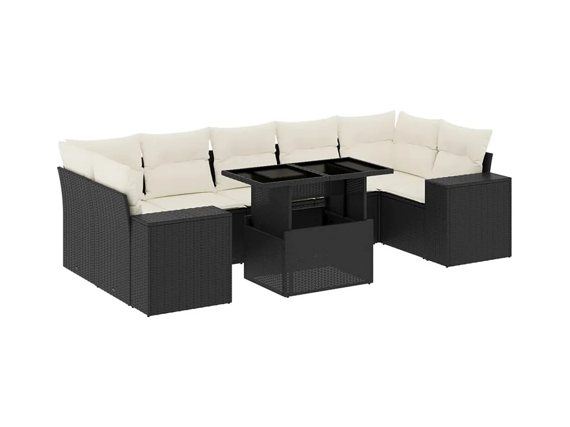 Salon de jardin 8 pièces avec coussins noir résine tressée
