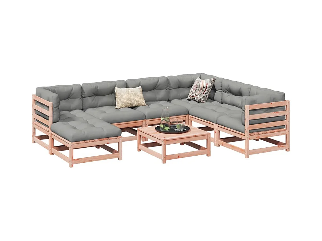 Salon de jardin 8 pièces avec coussins sapin douglas solide