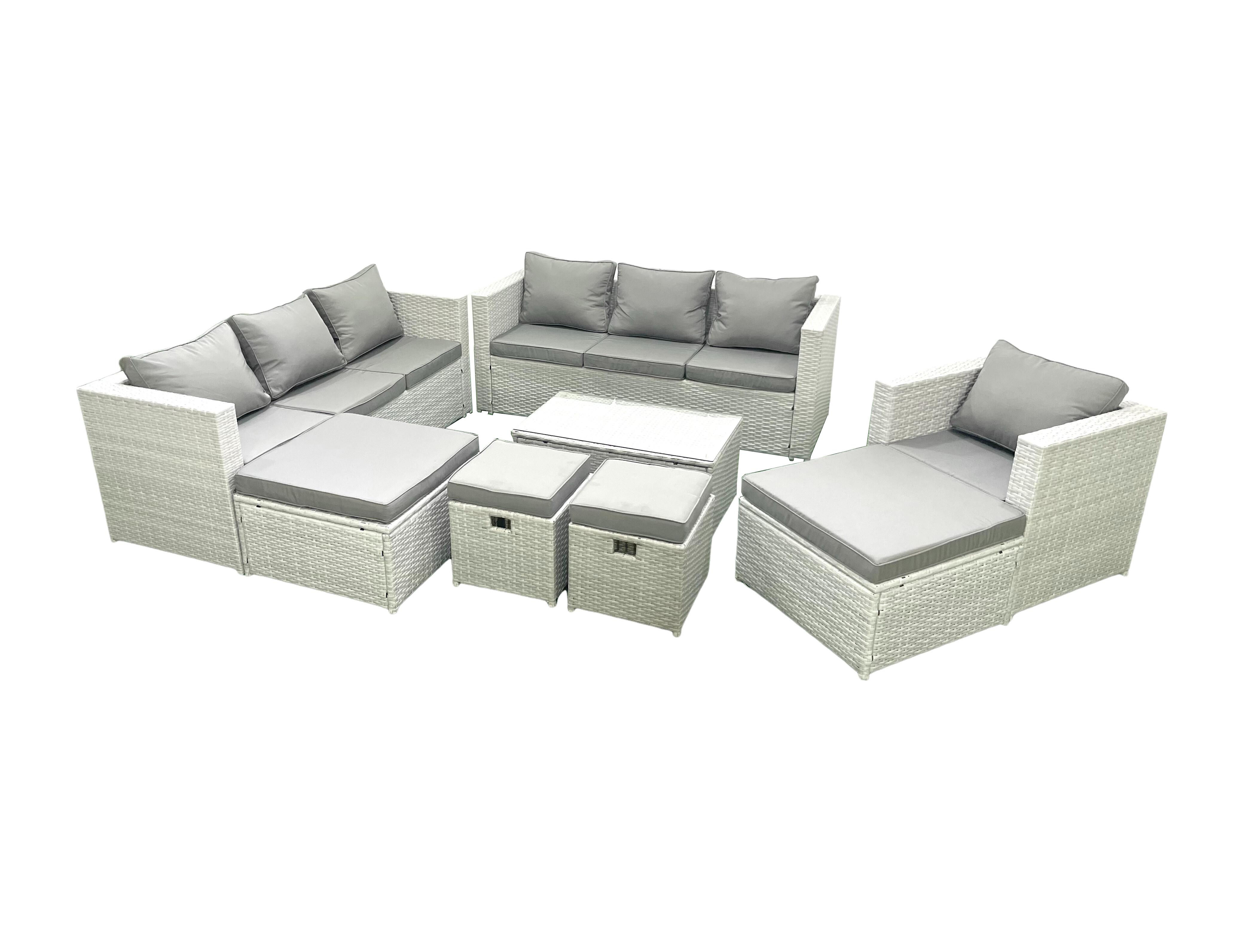 Salon de jardin 8 Pièces Canapé de jardin avec Fauteuil Table basse 4 Tabourets Gris clair mixte