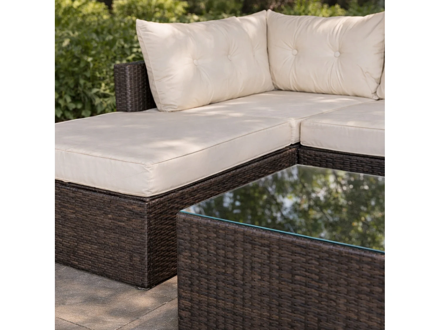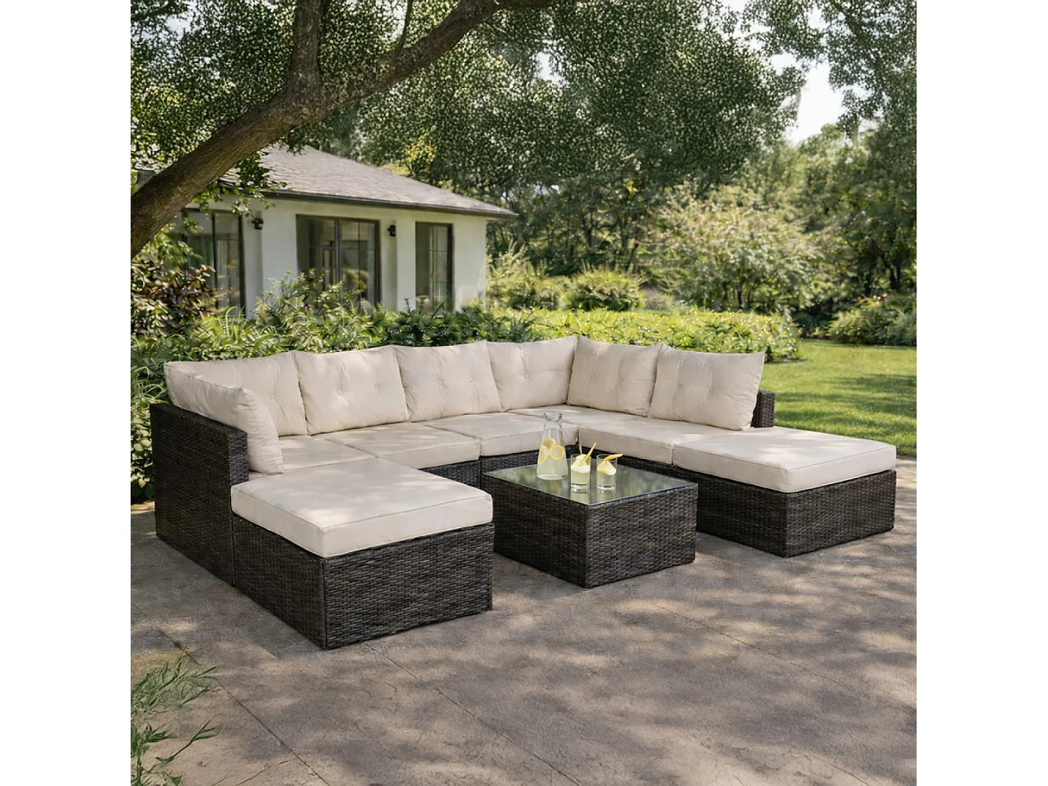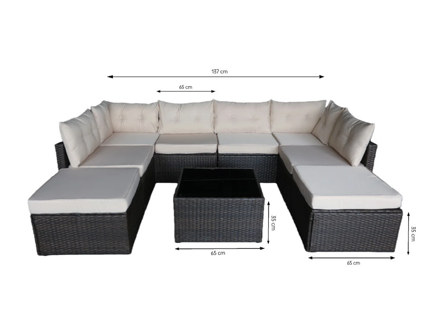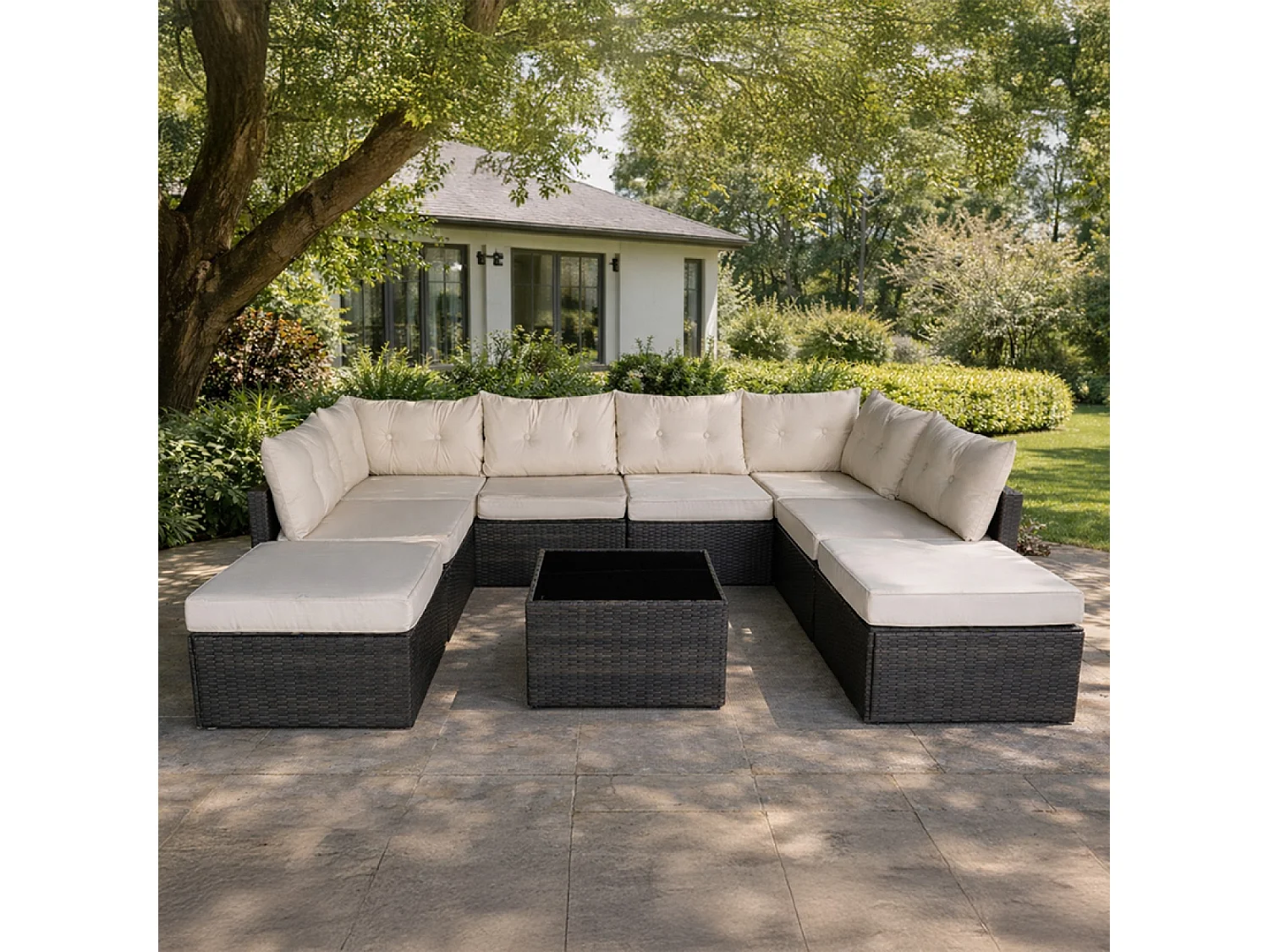 Salon de jardin 8 places en résine tressée marron et beige YANUCA