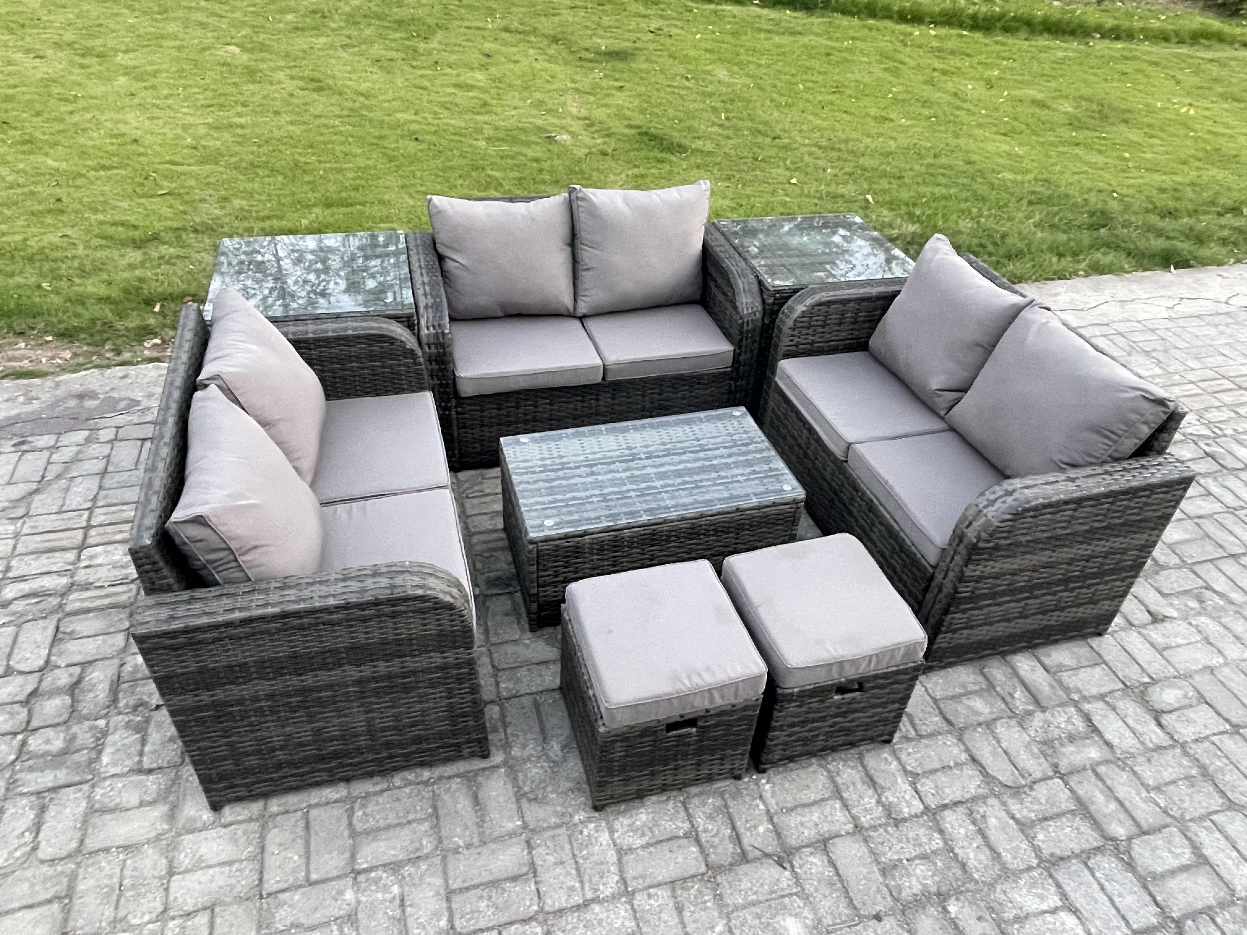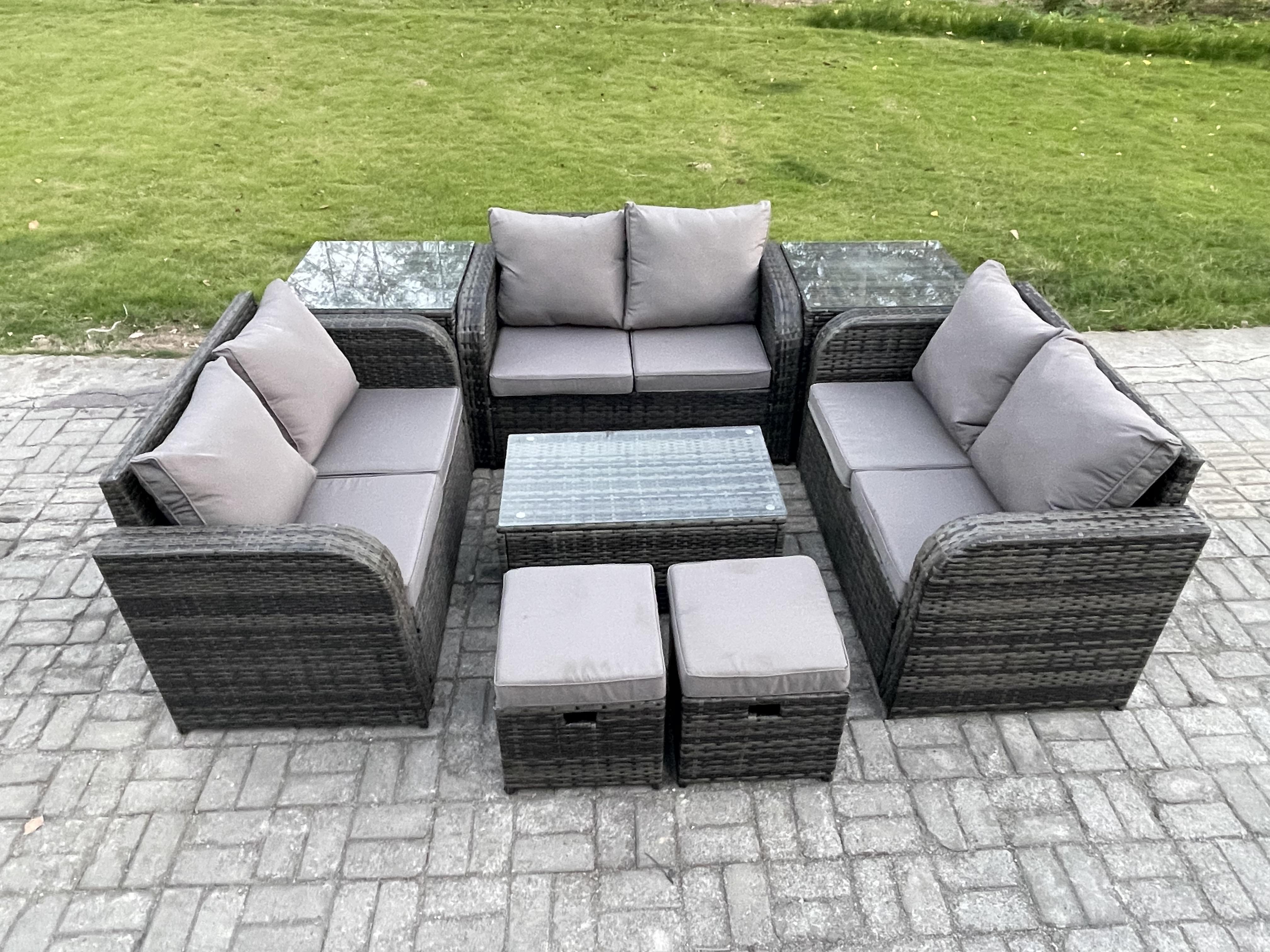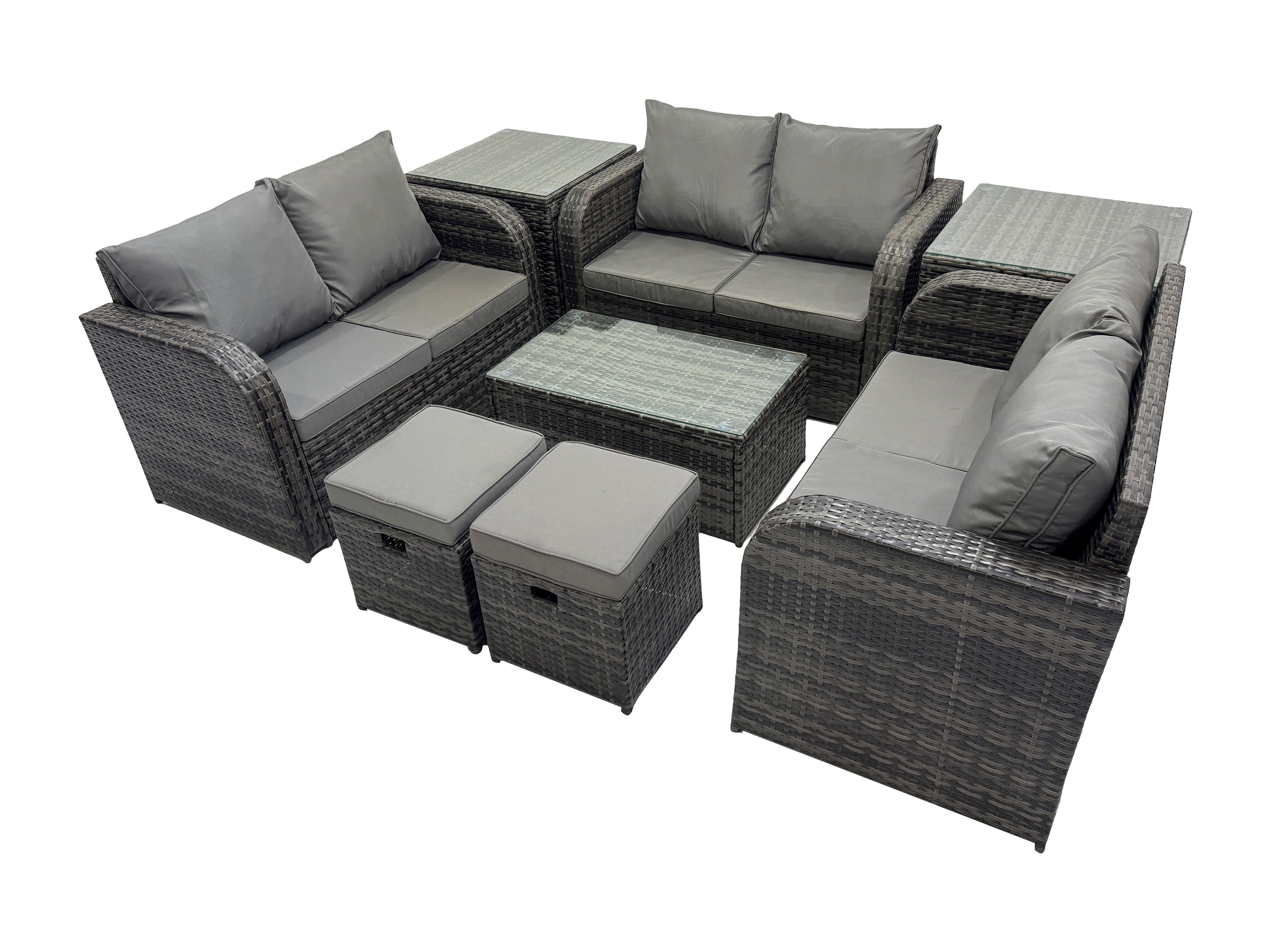 Salon de jardin 8 places Ensemble de canapés en rotin avec Canapé d'amour Table basse 2 Tables d'appoint 2 Petits tabourets Gris foncé mixte