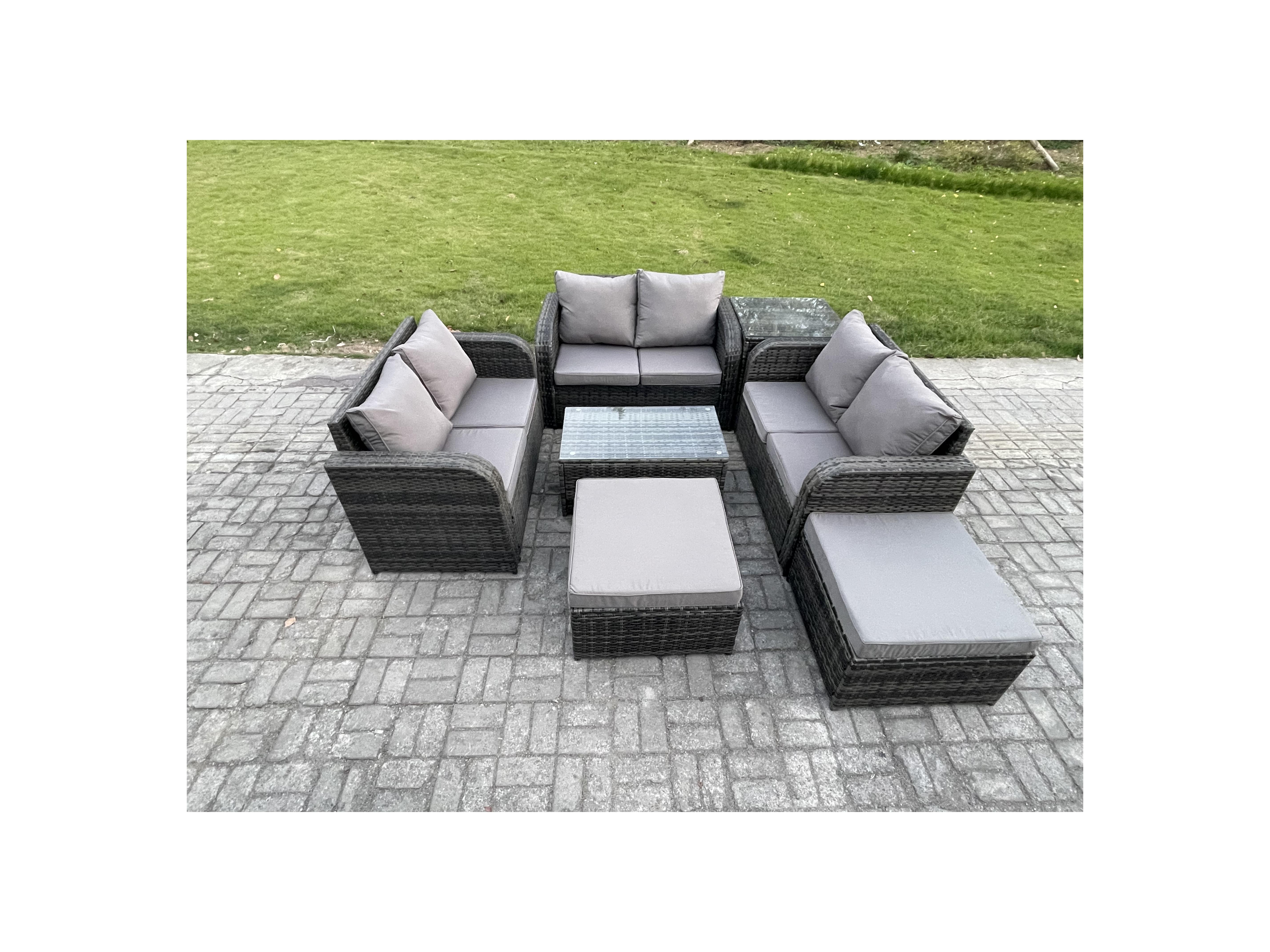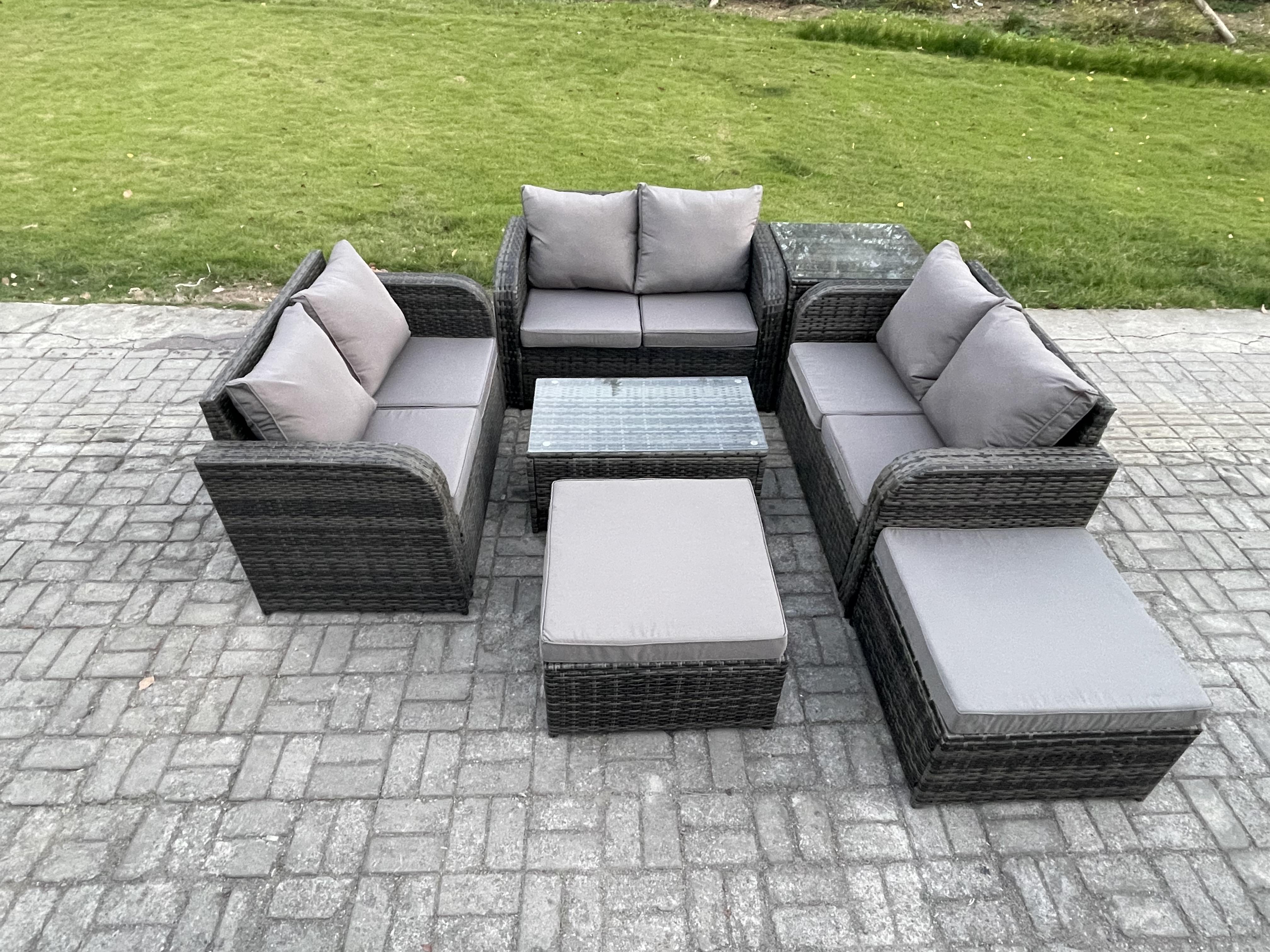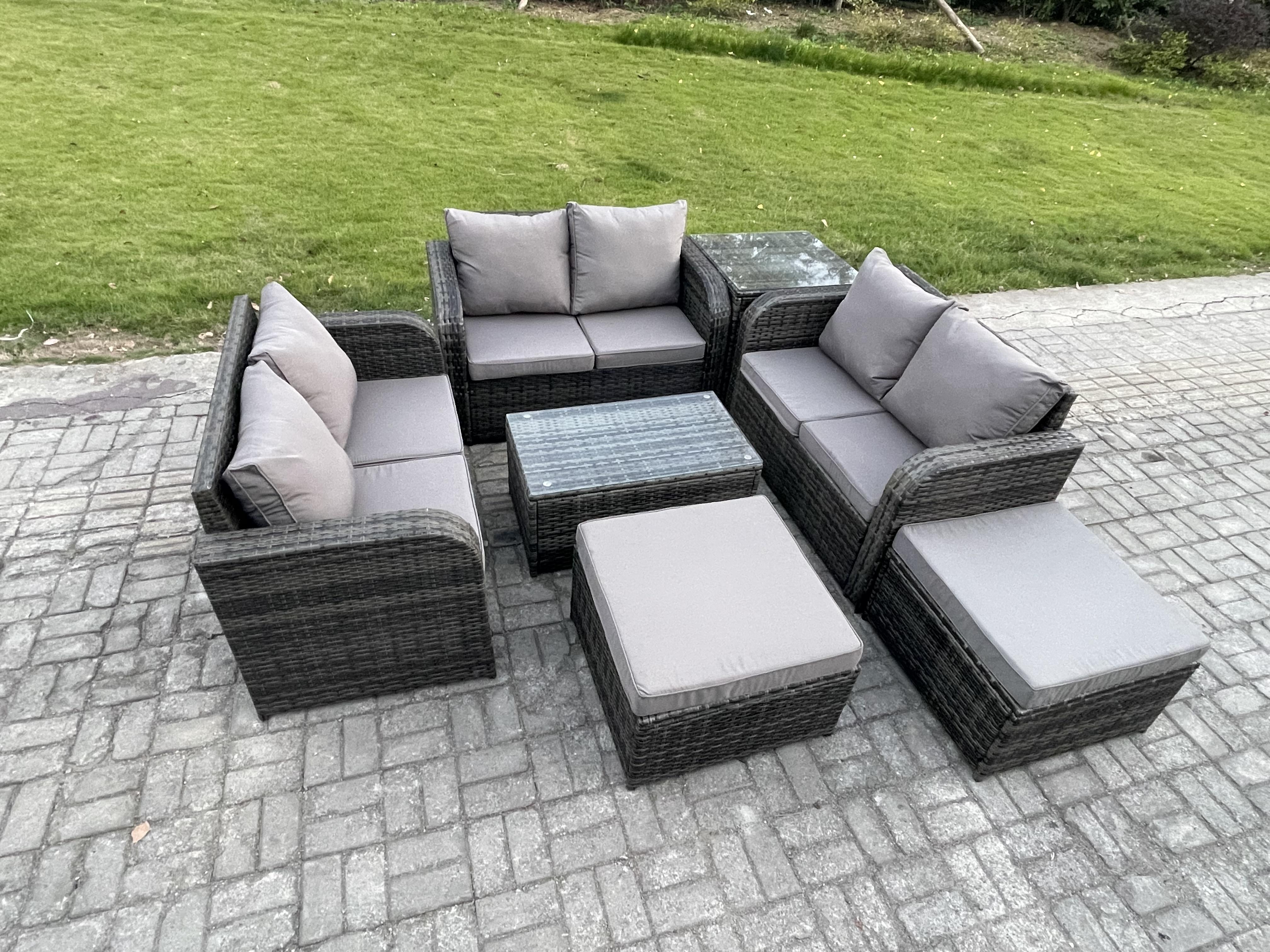 Salon de jardin 8 places Ensemble de canapés en rotin avec Canapé d'amour Table basse Table d'appoint 2 Grand tabourets Gris foncé mixte