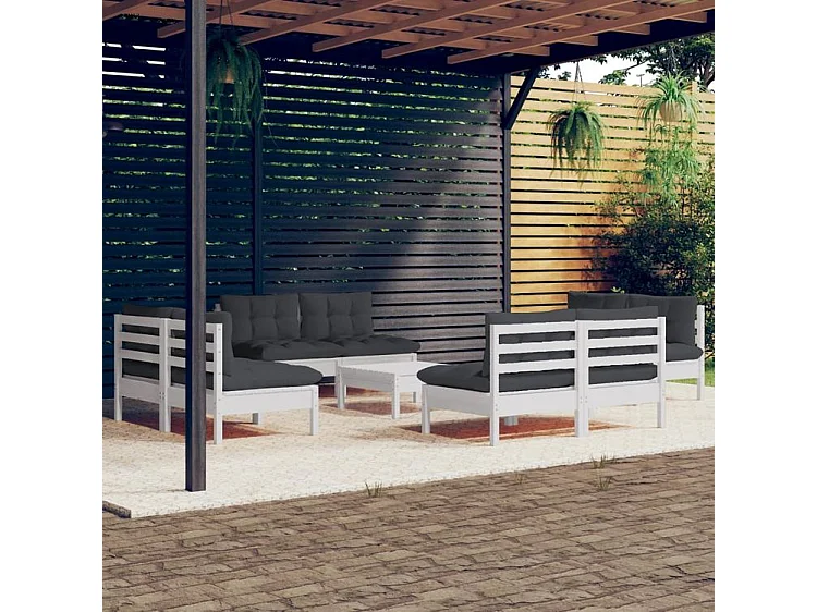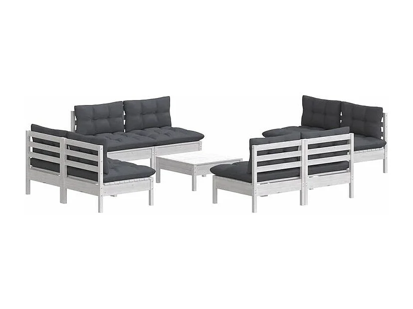 Salon de jardin 9 pcs avec coussins anthracite bois de pin