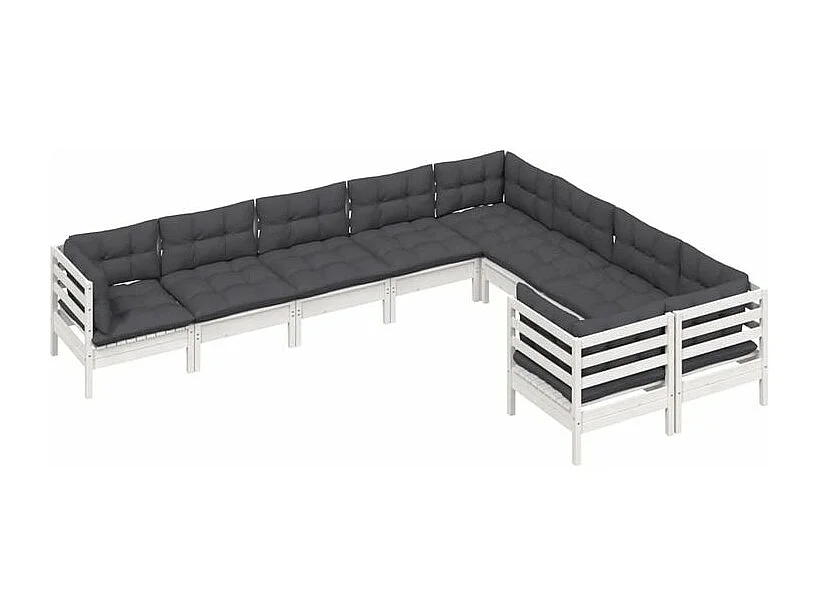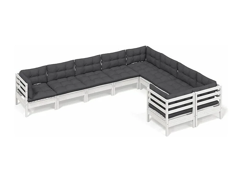 Salon de jardin 9 pcs avec coussins blanc bois de pin