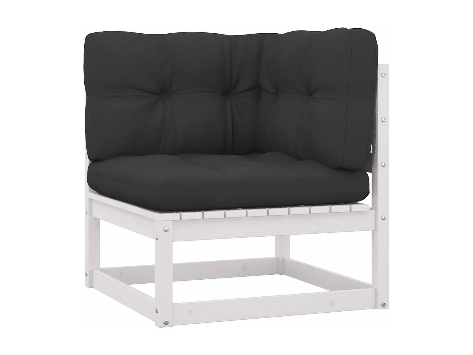Salon de jardin 9 pcs avec coussins Blanc Bois de pin massif