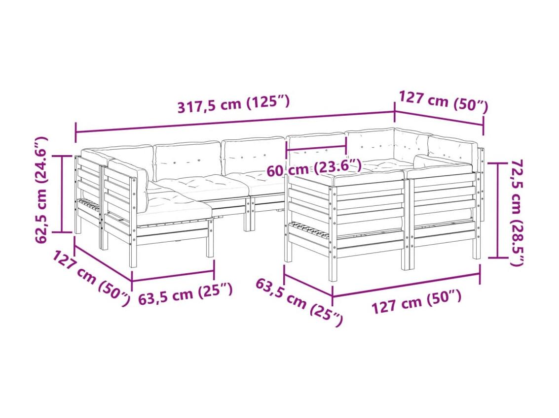 Salon de jardin 9 pcs avec coussins bois de pin imprégné