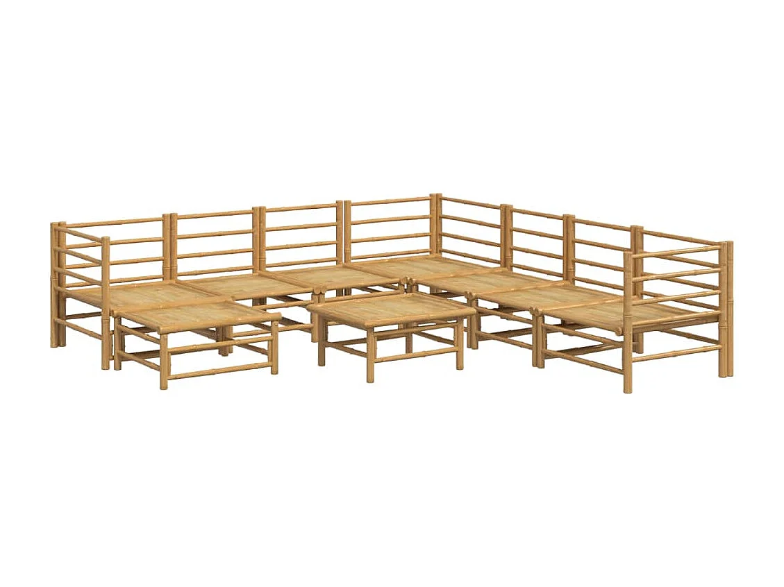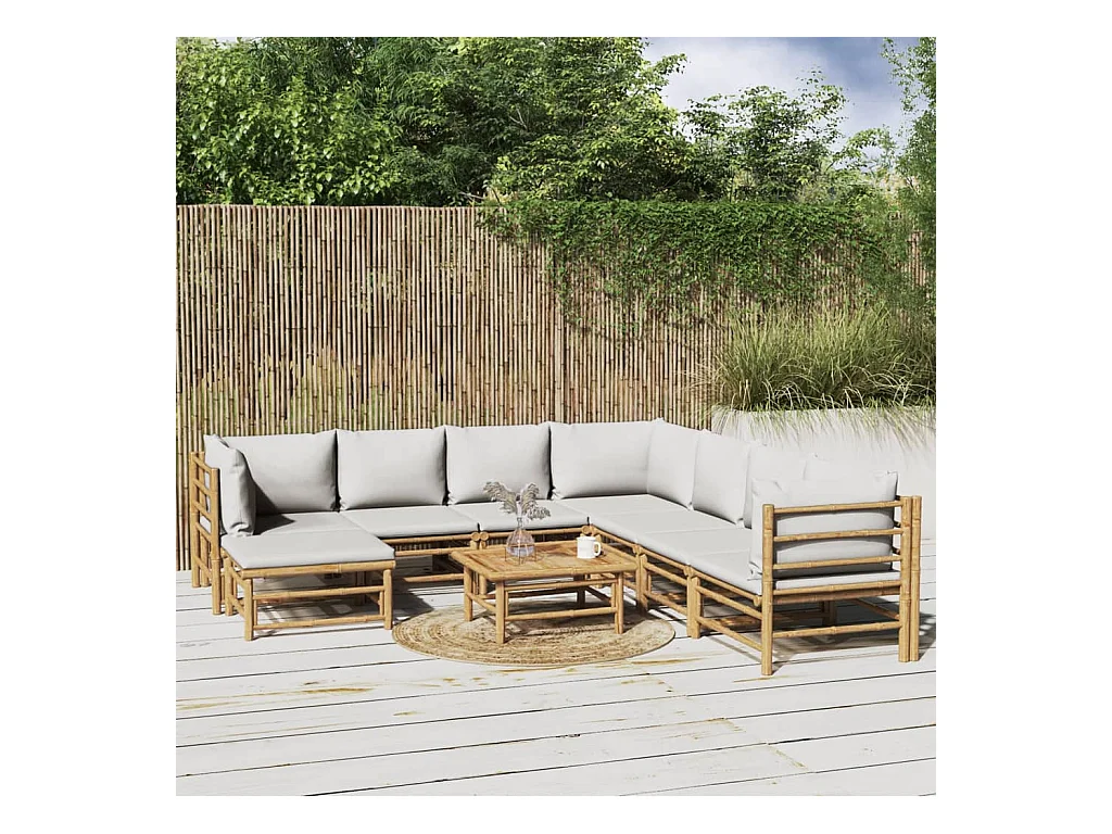 Salon de jardin 9 pcs avec coussins gris clair bambou