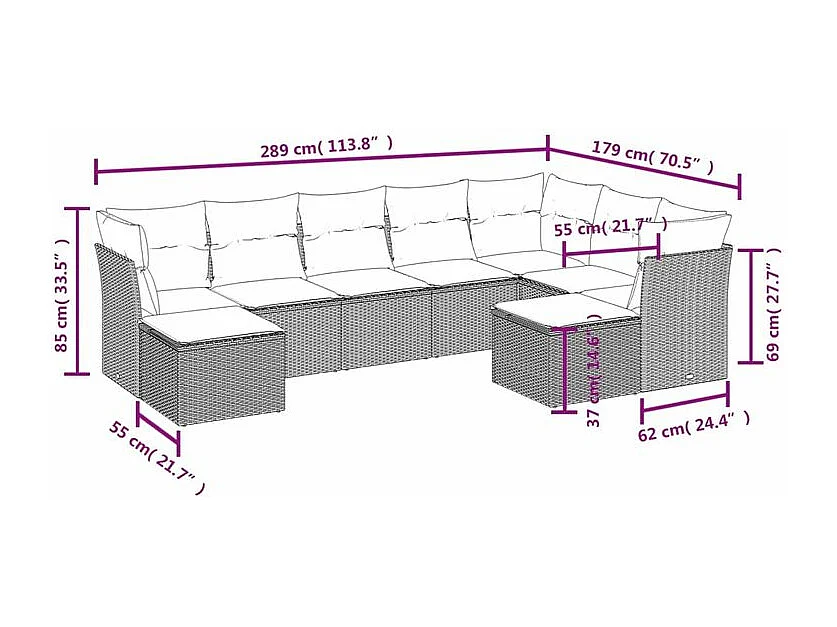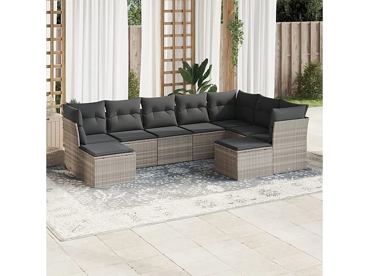 Salon de jardin 9 pcs avec coussins gris clair résine tressée