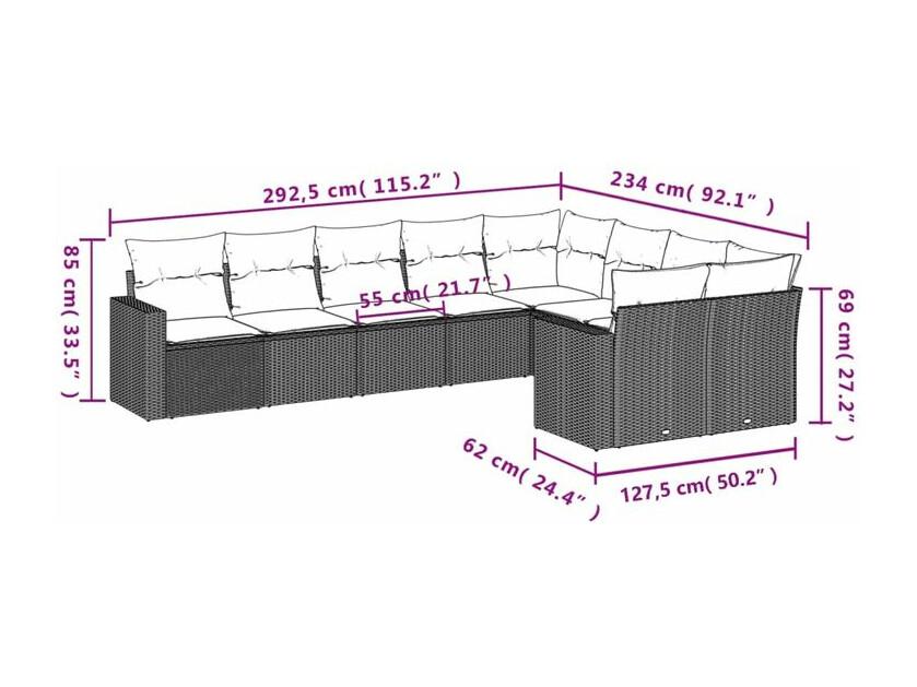 Salon de jardin 9 pcs avec coussins gris clair résine tressée