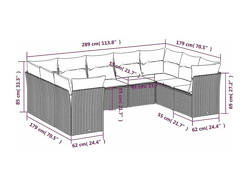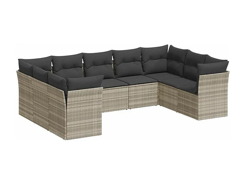 Salon de jardin 9 pcs avec coussins gris clair résine tressée