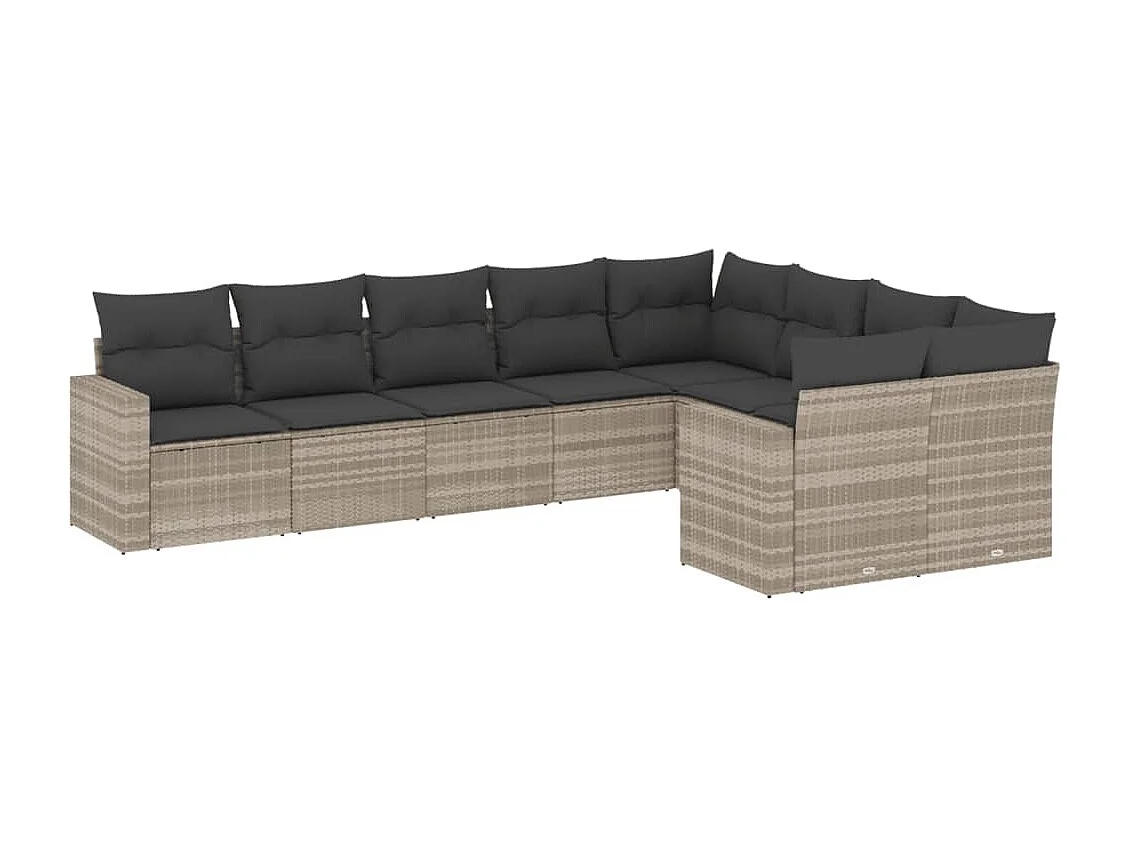 Salon de jardin 9 pcs avec coussins gris clair résine tressée