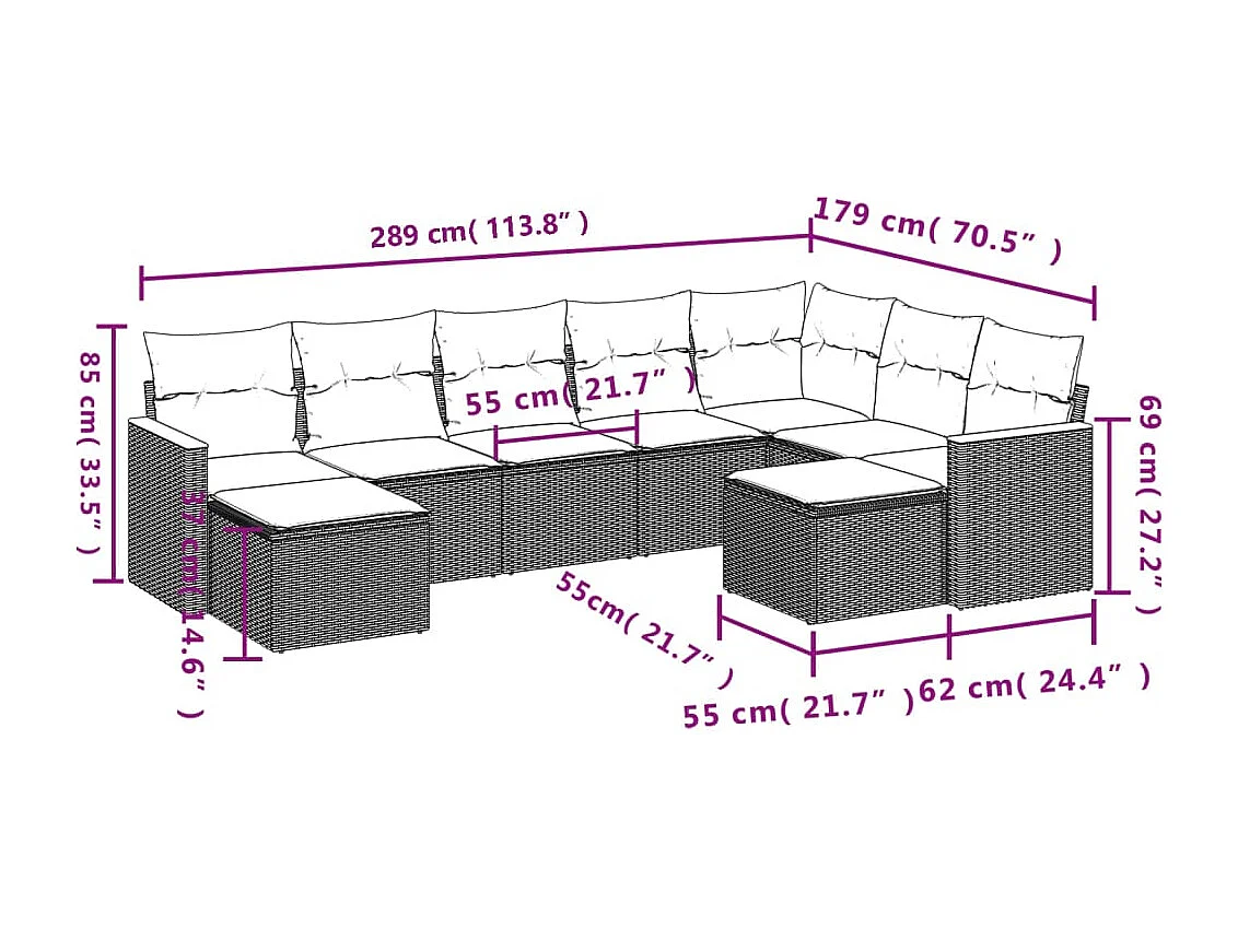 Salon de jardin 9 pcs avec coussins gris résine tressée