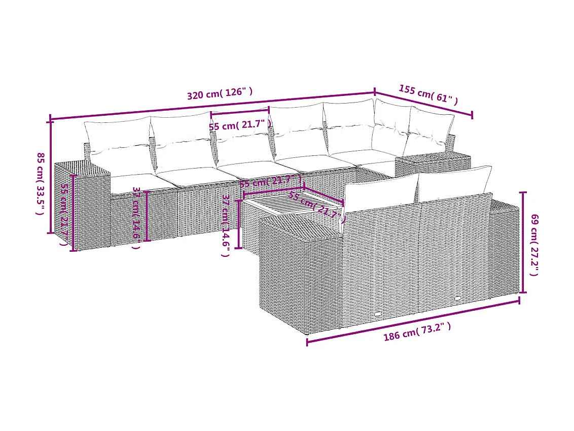 Salon de jardin 9 pcs avec coussins gris résine tressée