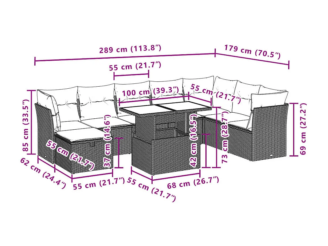Salon de jardin 9 pcs avec coussins noir résine tressée