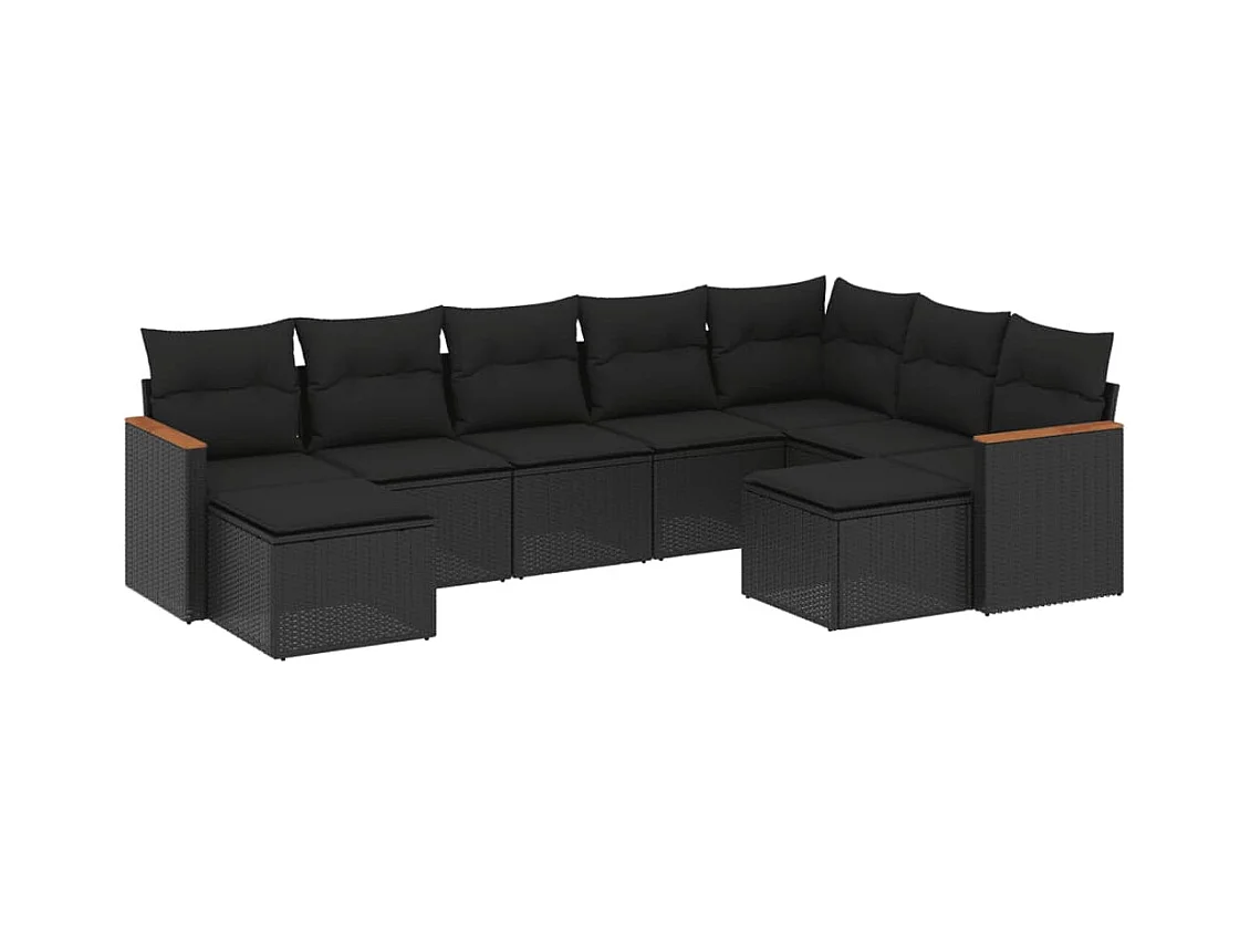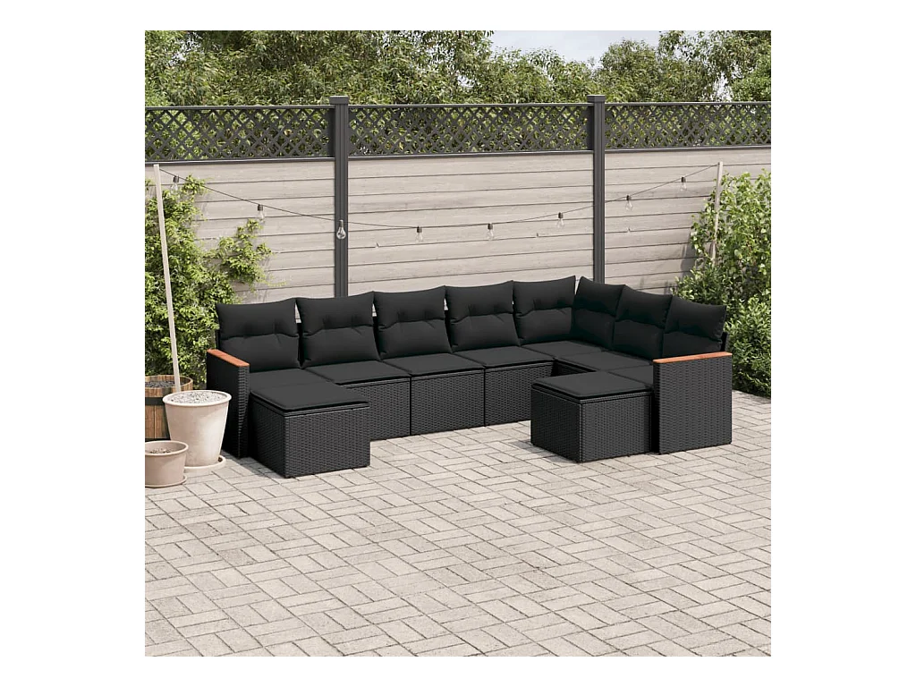 Salon de jardin 9 pcs avec coussins noir résine tressée