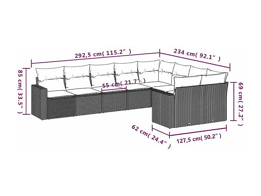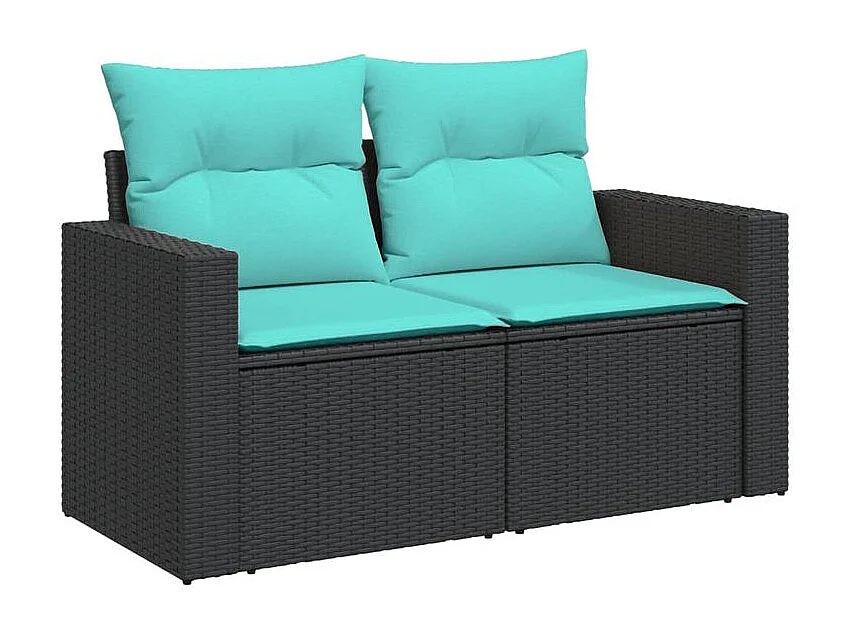 Salon de jardin 9 pcs avec coussins noir résine tressée