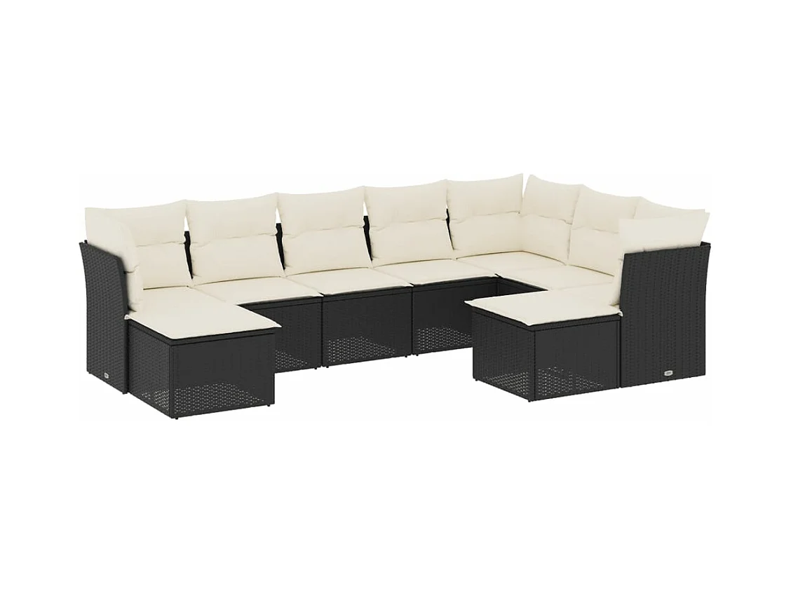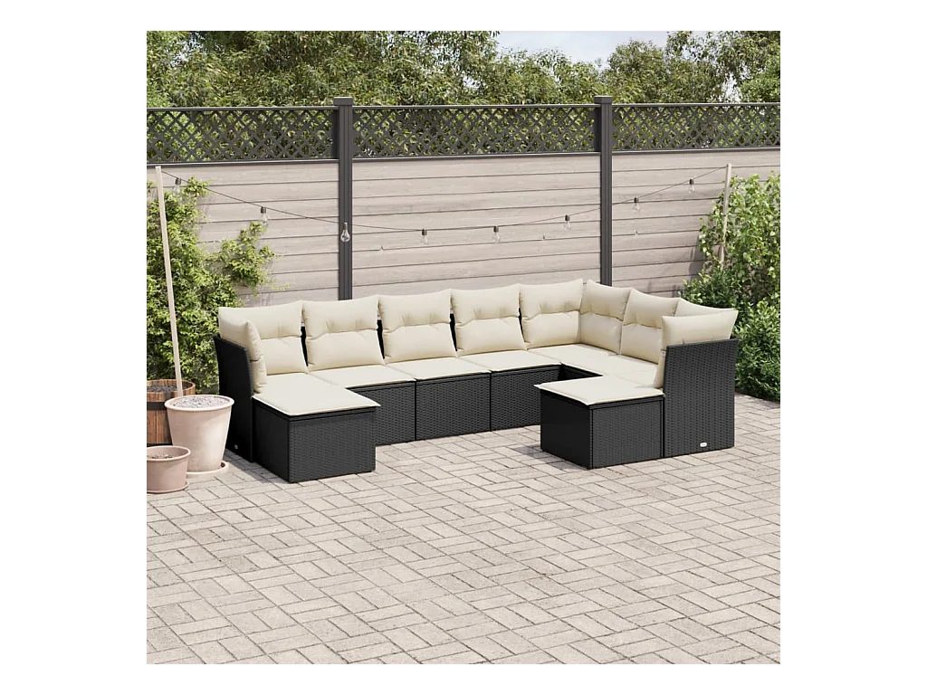 Salon de jardin 9 pcs avec coussins noir résine tressée