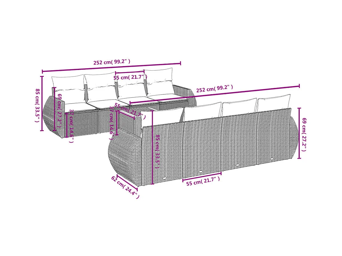 Salon de jardin 9 pcs avec coussins noir résine tressée