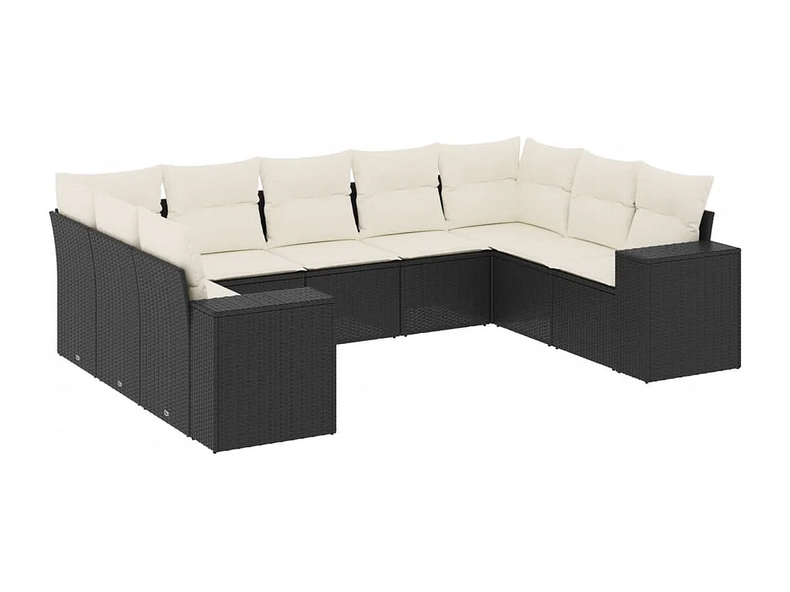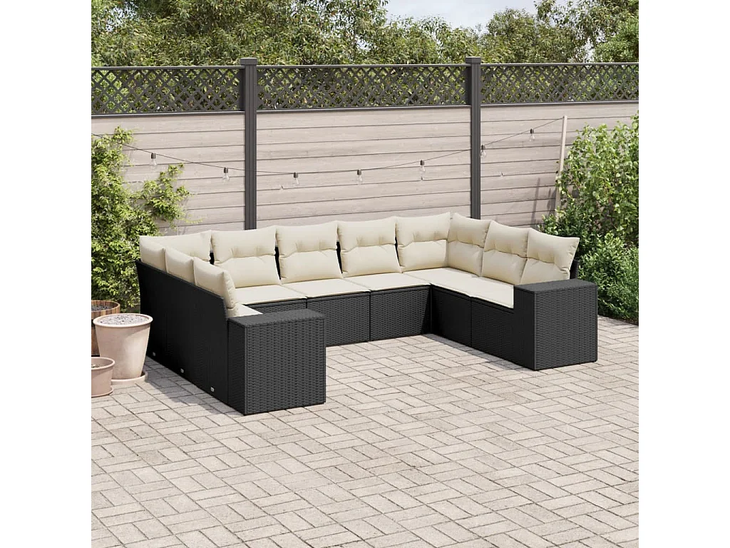 Salon de jardin 9 pcs avec coussins noir résine tressée