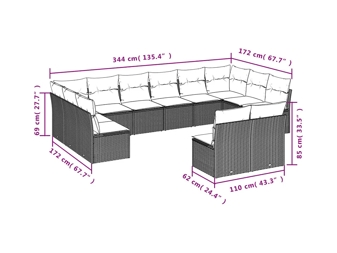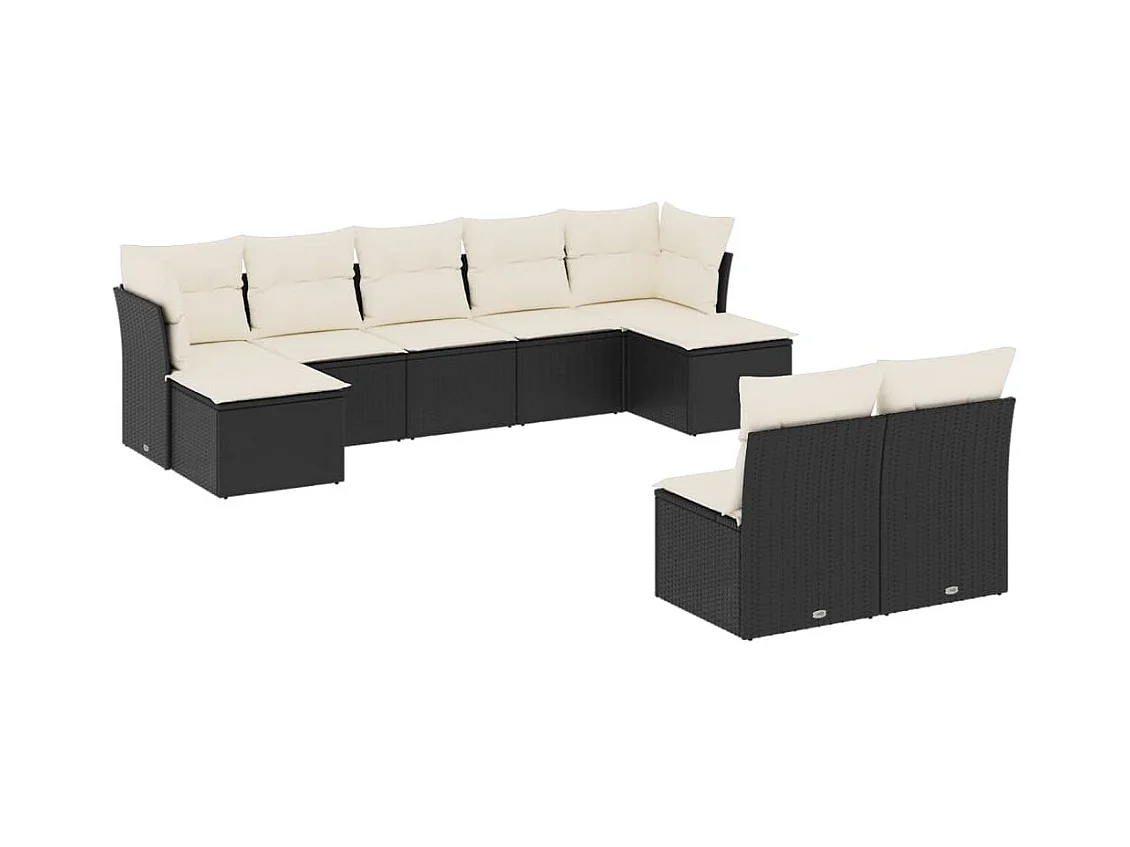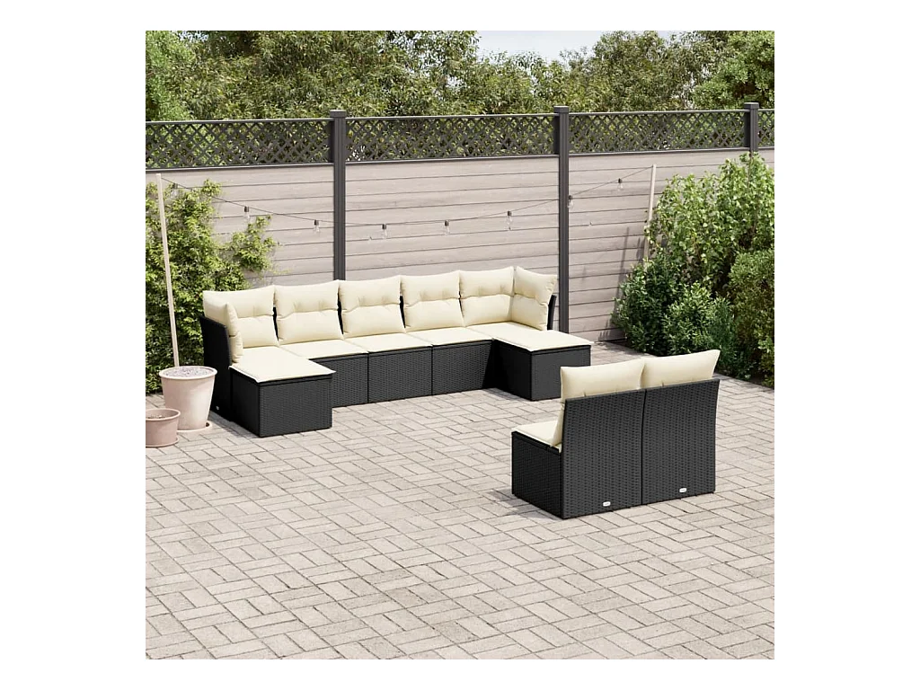 Salon de jardin 9 pcs avec coussins noir résine tressée