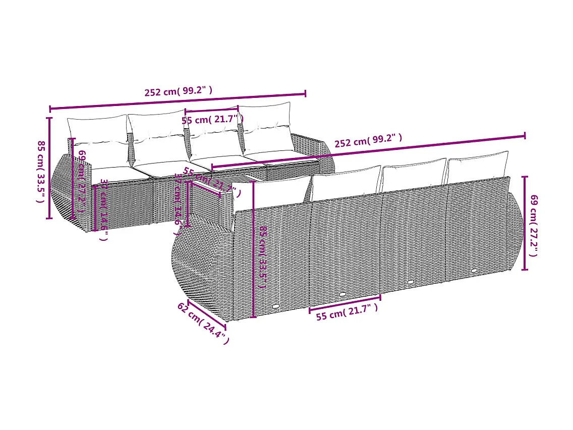 Salon de jardin 9 pcs avec coussins noir résine tressée